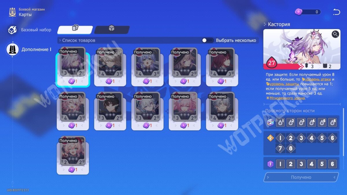 Доступные игровые карточки различаются по редкости и делятся на легендарные с изображениями персонажей, эпические и обычные. Цветные кубики можно экипировать перед сражением только при выборе 3⭐ героя, бойцы низшей редкости не смогут их применять в бою. Несмотря на такую разницу в силе и способностях, всех юнитов можно использовать для прохождения определенного вида контента.