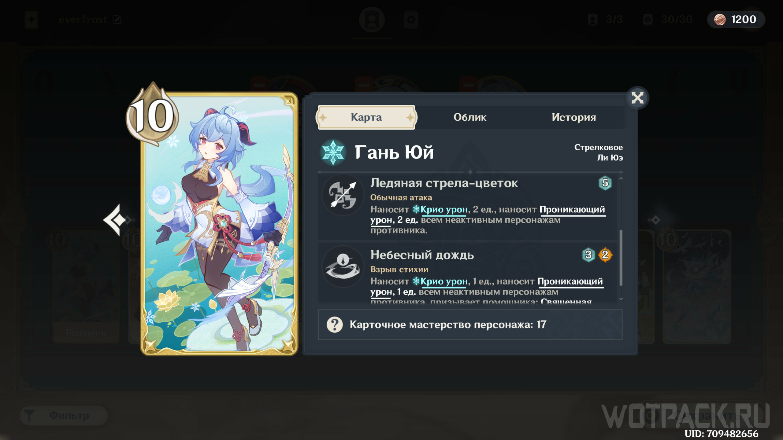 с такой колодой ни разу почти не проиграла (играю против нпс/возвышения/боссы). единичные случаи — не повезло с дайсами/враг жёстко ультанул. по поводу персов в колоде: Гань Юй — топ лучший дамагер. за 5 дайсов нанесет урон троим сразу, ещё и приличный. полезна 3 навыком, а её сигна карта не особо. фишль и её оз — топ, часто юзаю. ульта тоже бьёт жёстко. Аяка — чисто так, если с дайсами крупно не повезло. + наносит элементальный урон крио для реакций.