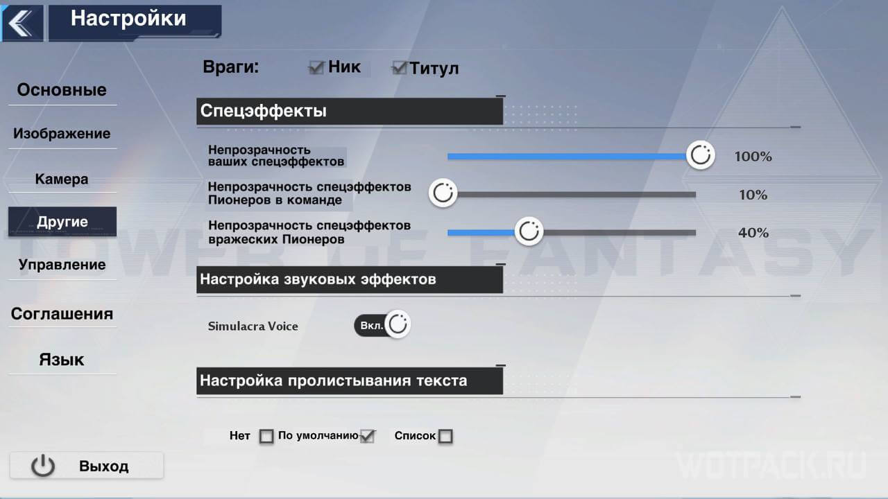 Настройки Tower of Fantasy на русском языке
