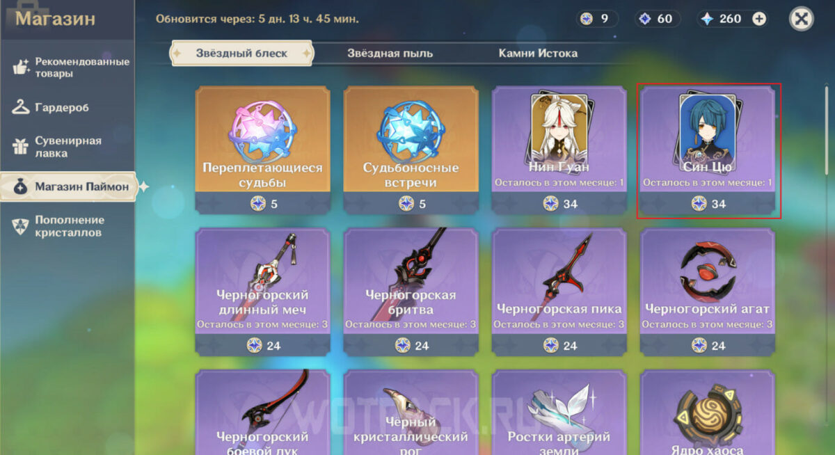 Также герой появляется в магазине Паймон в марте и сентябре. Можете приобрести самого персонажа или его созвездия за 34 Звездного блеска.