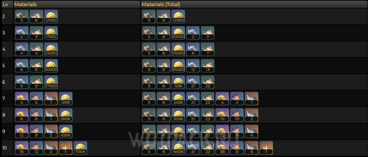 Чтобы возвысить до максимального 90 уровня, требуются следующие расходные ресурсы: