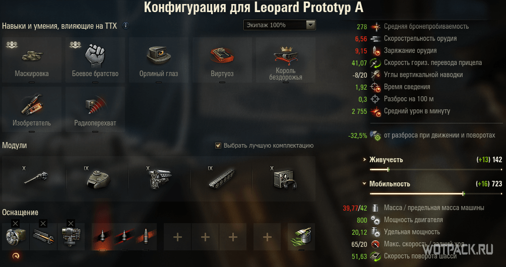 Оптимальным вариантом будет поставить приспособления, влияющие на урон в минуту и комфортность ведения огня, для снайперских выстрелов потребуется заезжать на возвышенности и быстро стрелять, пока противник в засвете. Чтобы достичь показателей среднего урона в 2830 единицы, стоит использовать такое оборудование:
