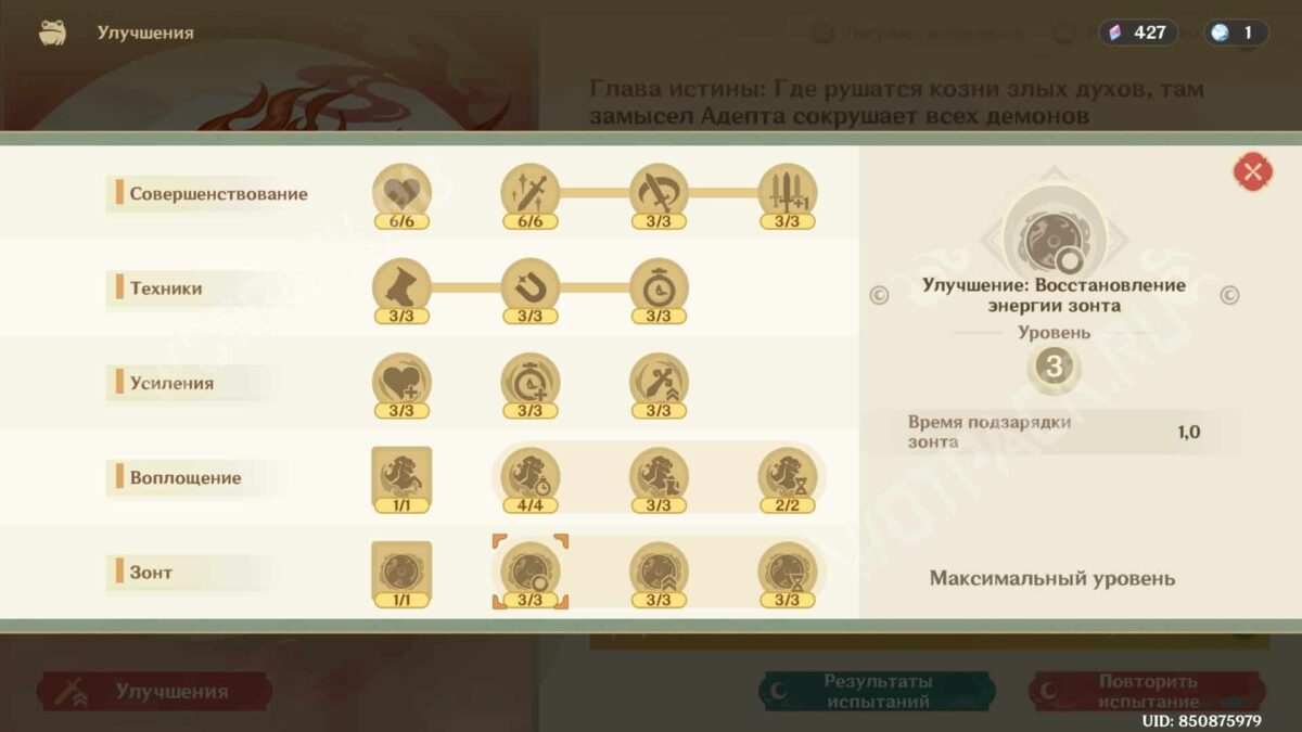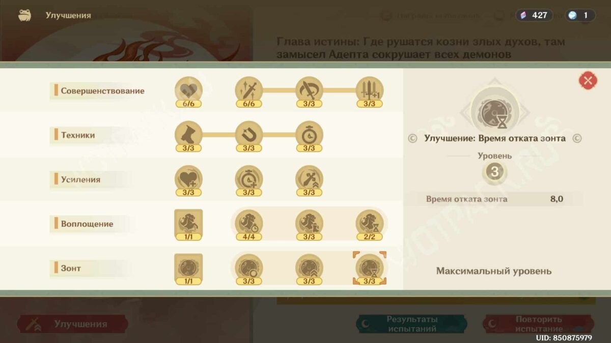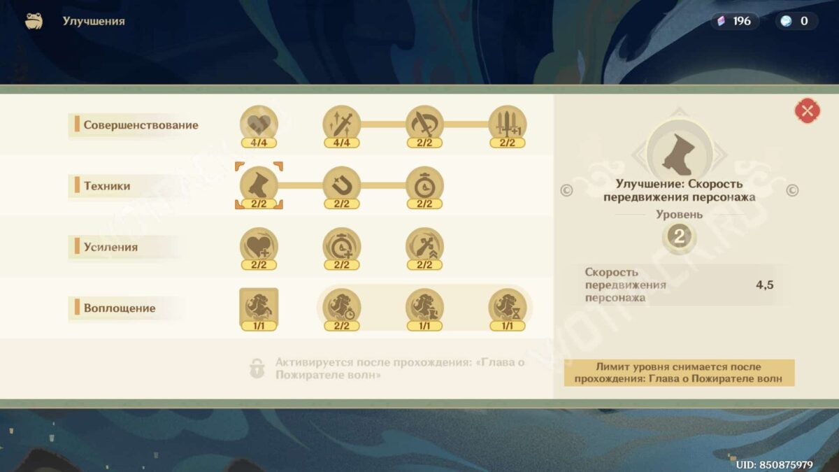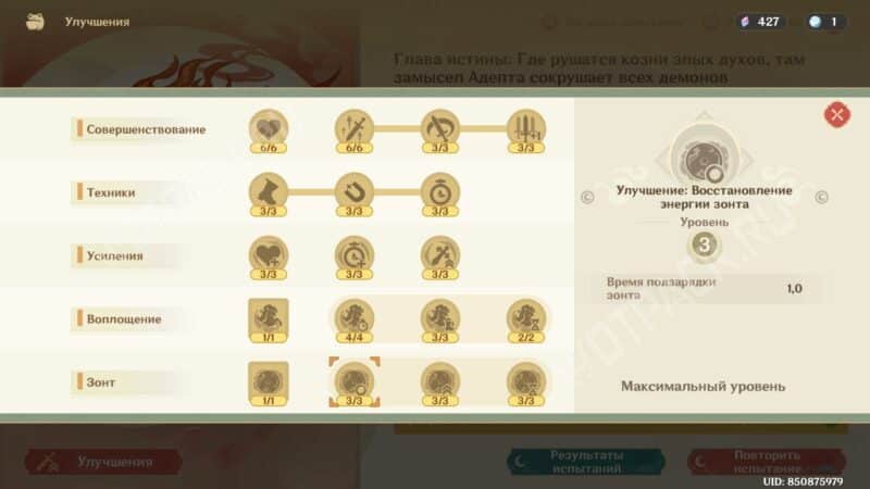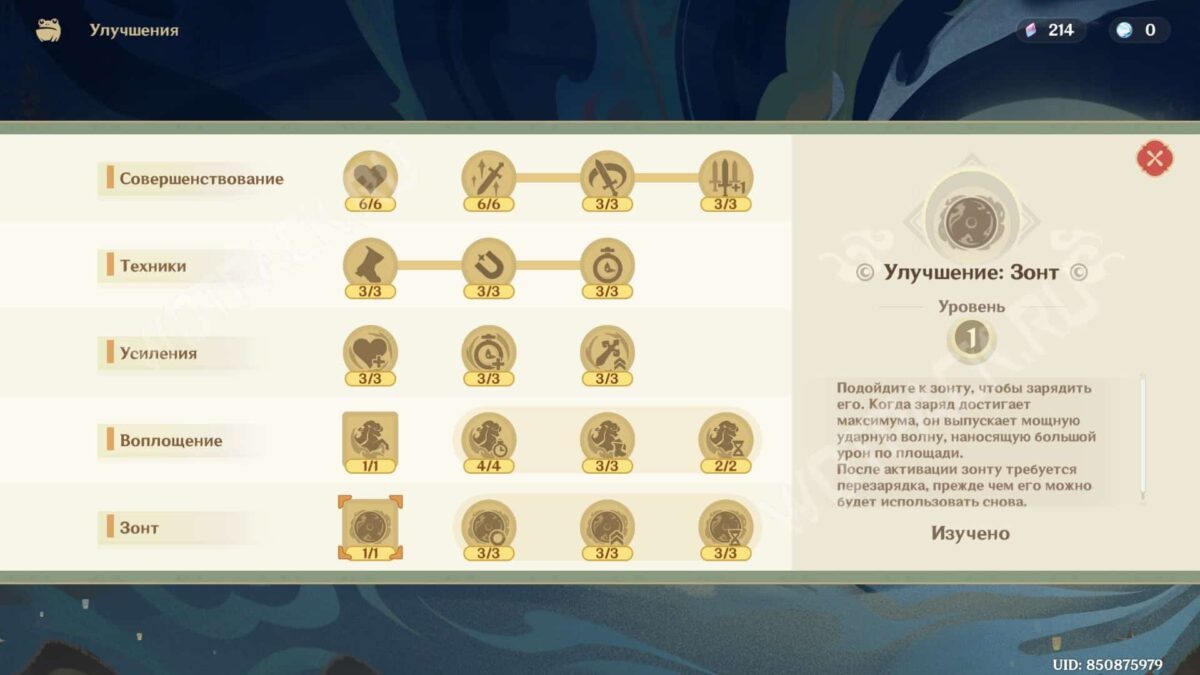 Для полного закрытия всего древа навыков необходимо примерно 11-12 тысяч Мечтаний. После победы над одним из сильных противников выдадут особый ресурс, за который можно открыть Воплощение или Зонт.