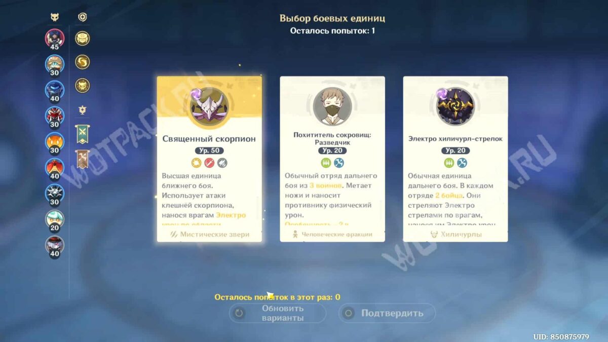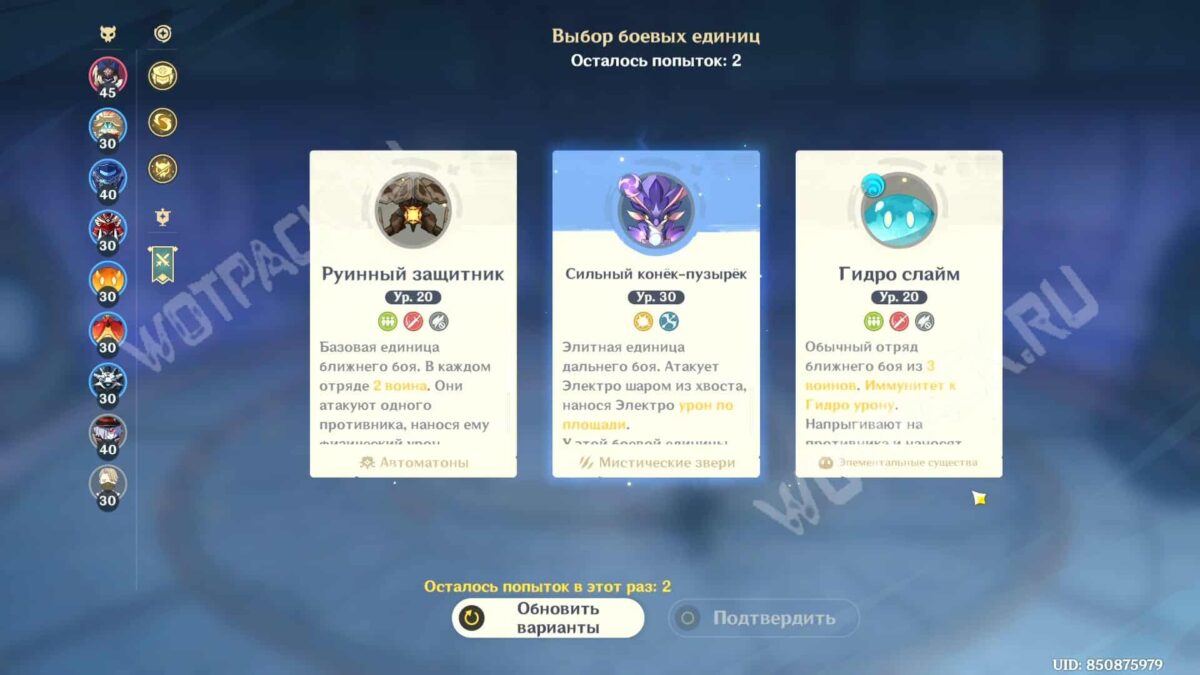 Для получения более сильных бойцов используйте кнопку сброса вариантов.