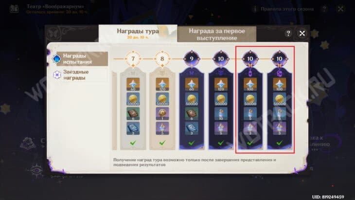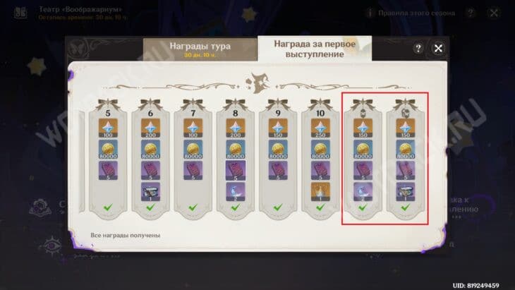 - камни истока ×200, мора ×100 000, священное масло ×10, священная эссенция ×6 — обновляющее вознаграждение за каждый сезон.
