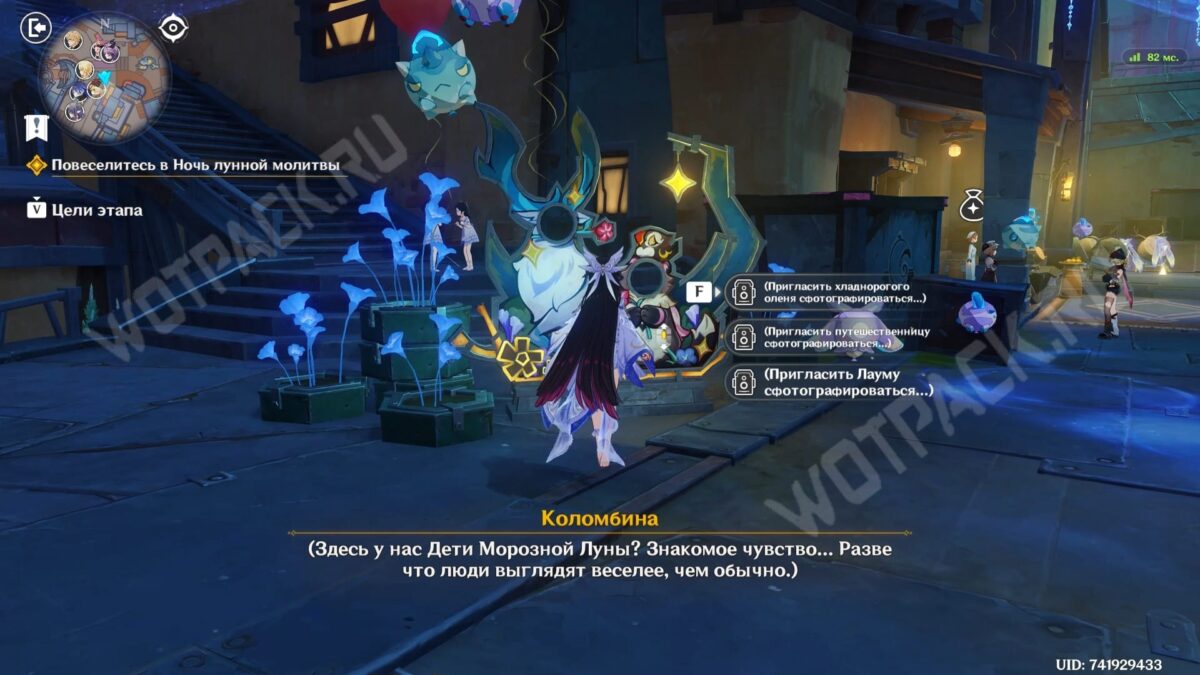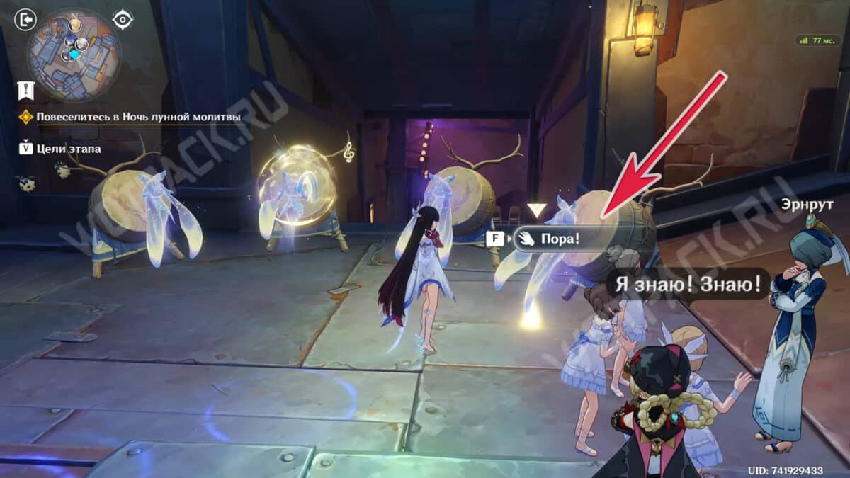 Продолжайте веселиться в Ночь лунной молитвы или поговорите с Паймон возле аттракциона. Во время диалога можете отказаться уходить, чтобы провести больше времени в праздничном Нашгороде, или подтвердить готовность к ритуалу.