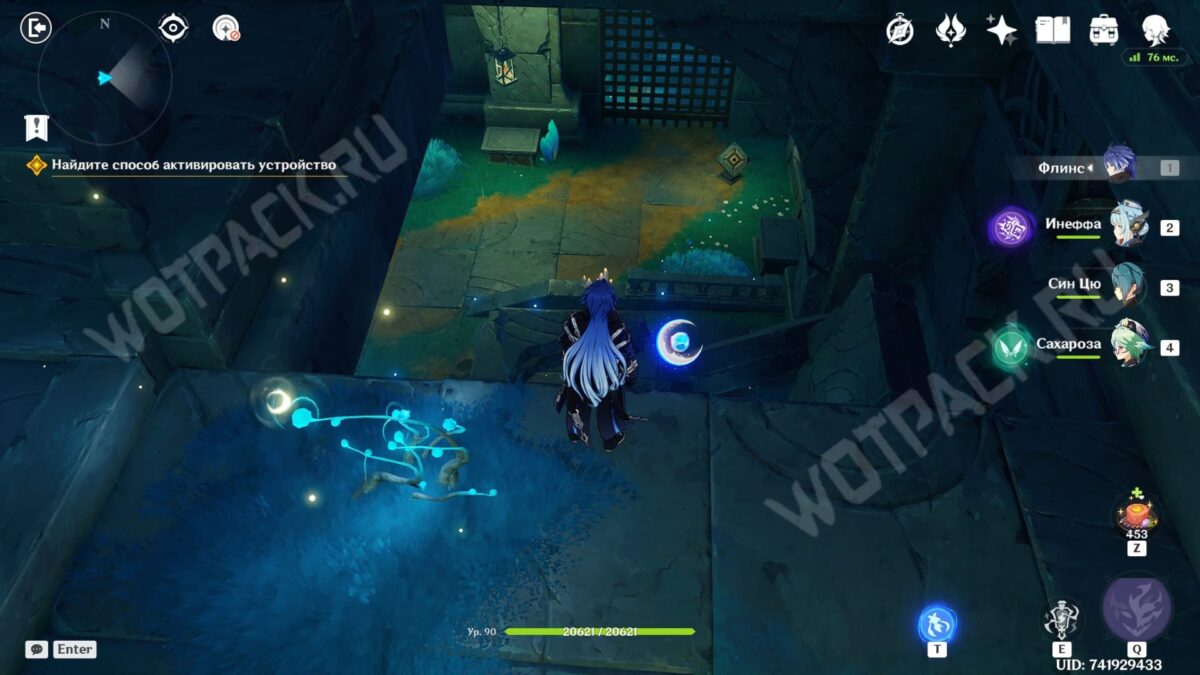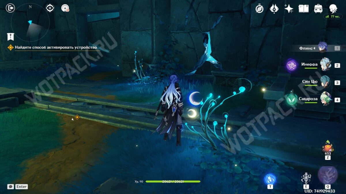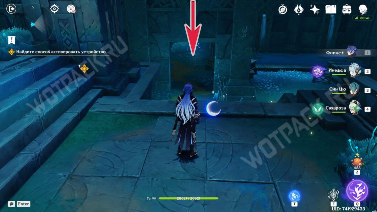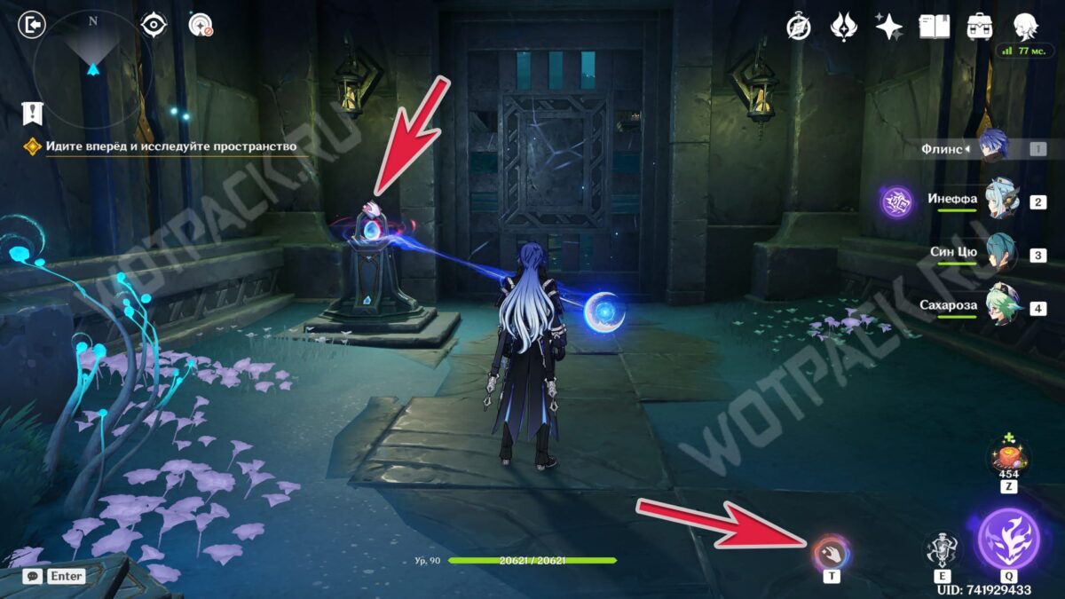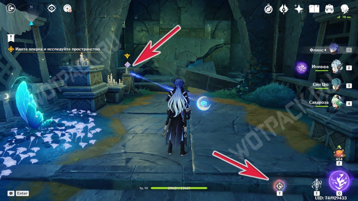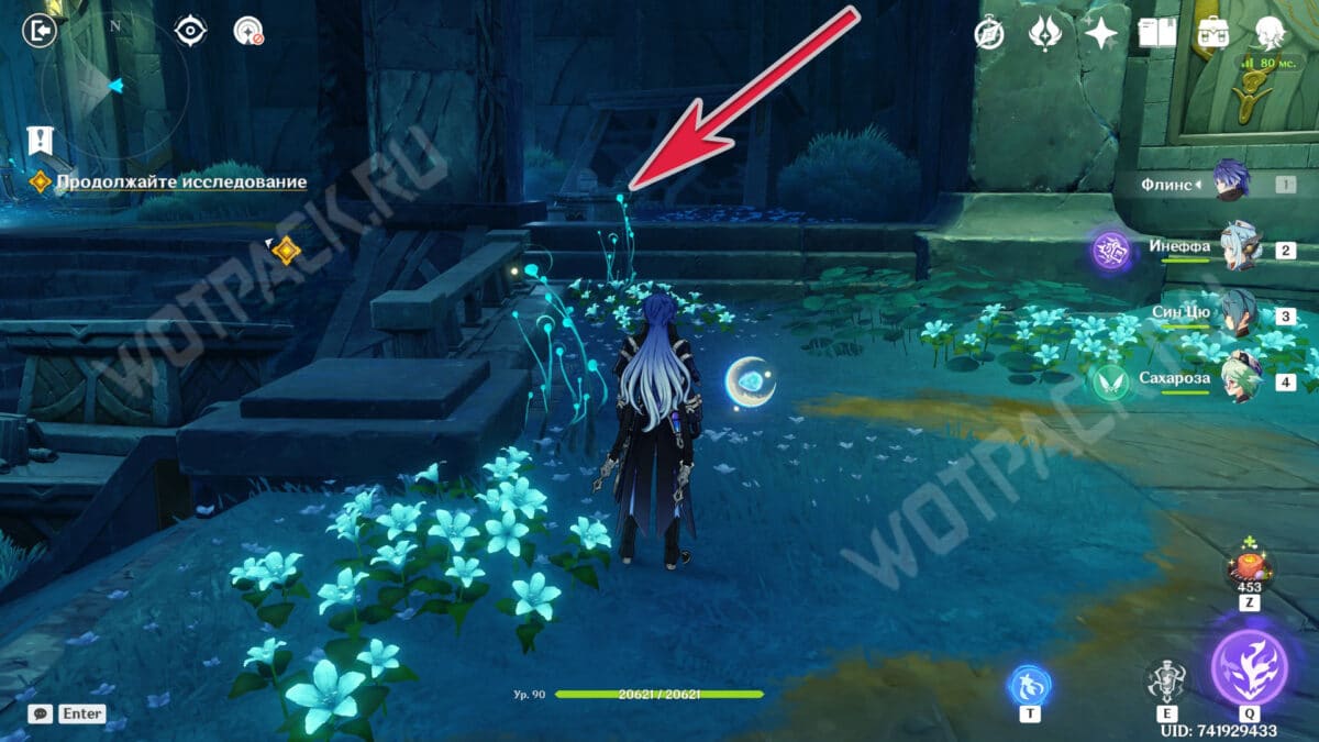 Повернитесь спиной к барельефам и вытяните ядро из подставки у лестницы. Двигаясь рядом с растениями, дающими энергию куувяки, дойдите до дальней колонны справа.