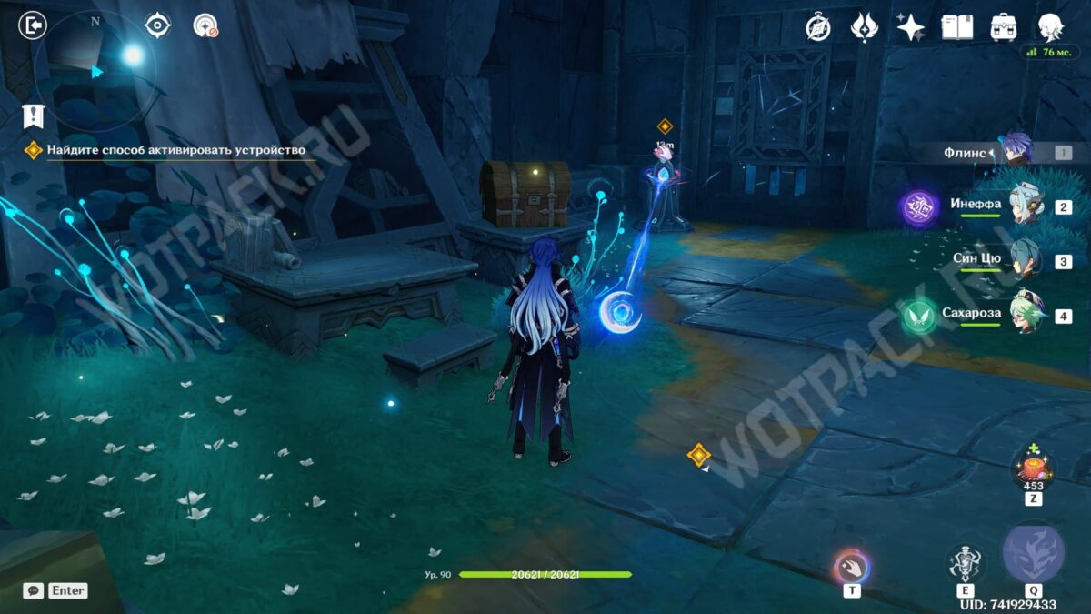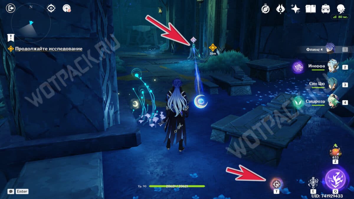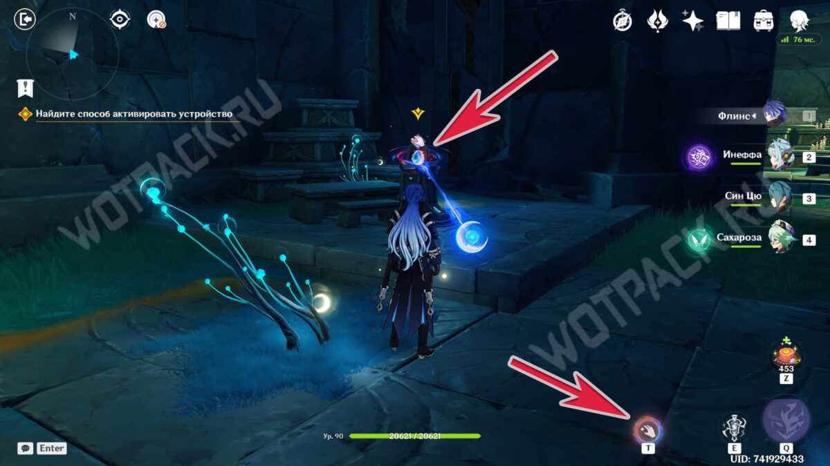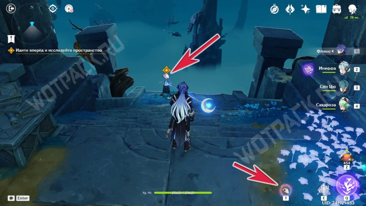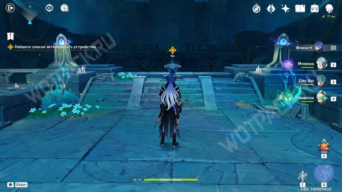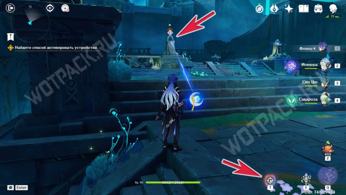 Повернитесь спиной к барельефам и вытяните ядро из подставки у лестницы. Двигаясь рядом с растениями, дающими энергию куувяки, дойдите до дальней колонны справа.