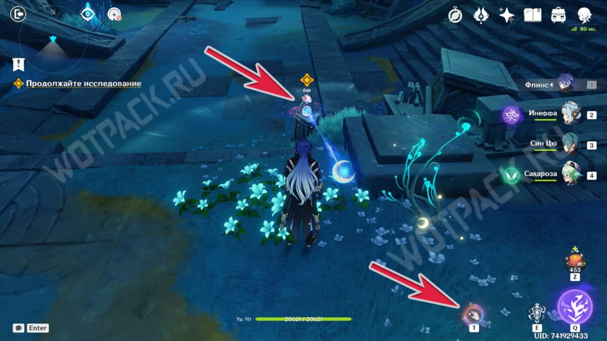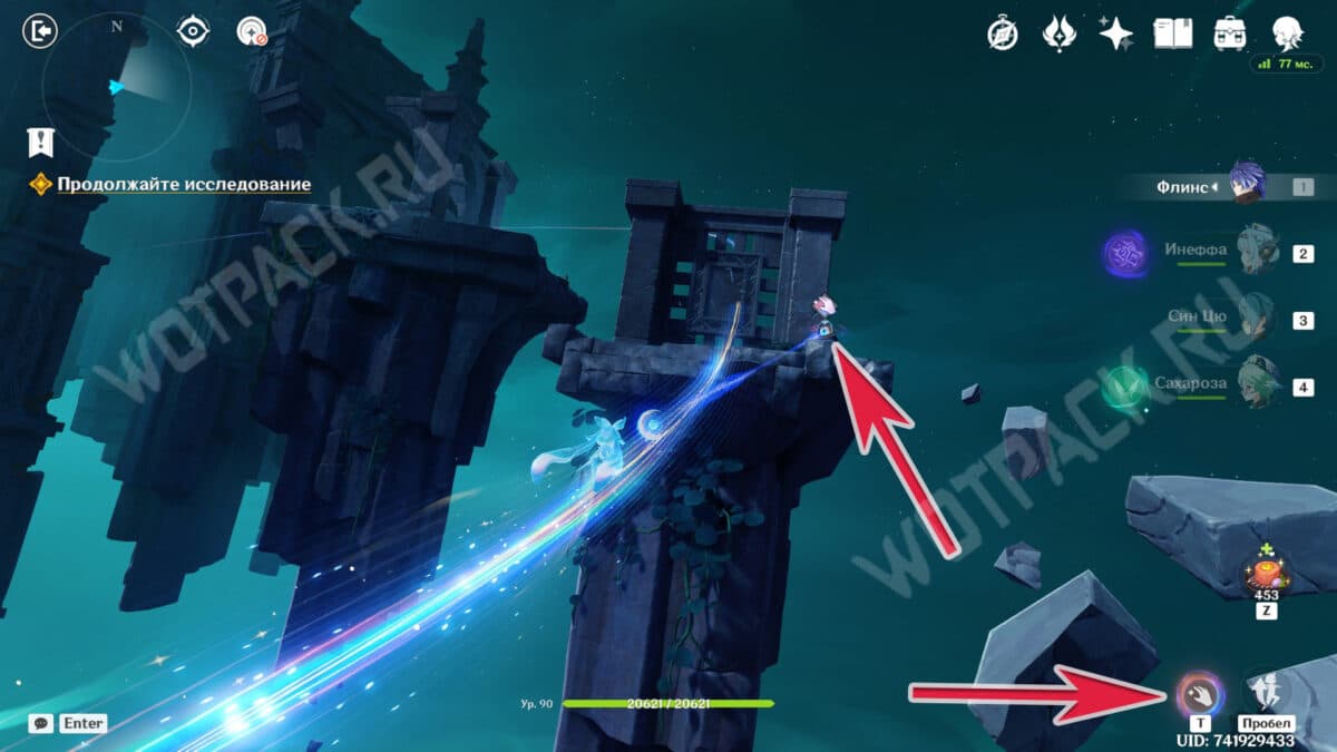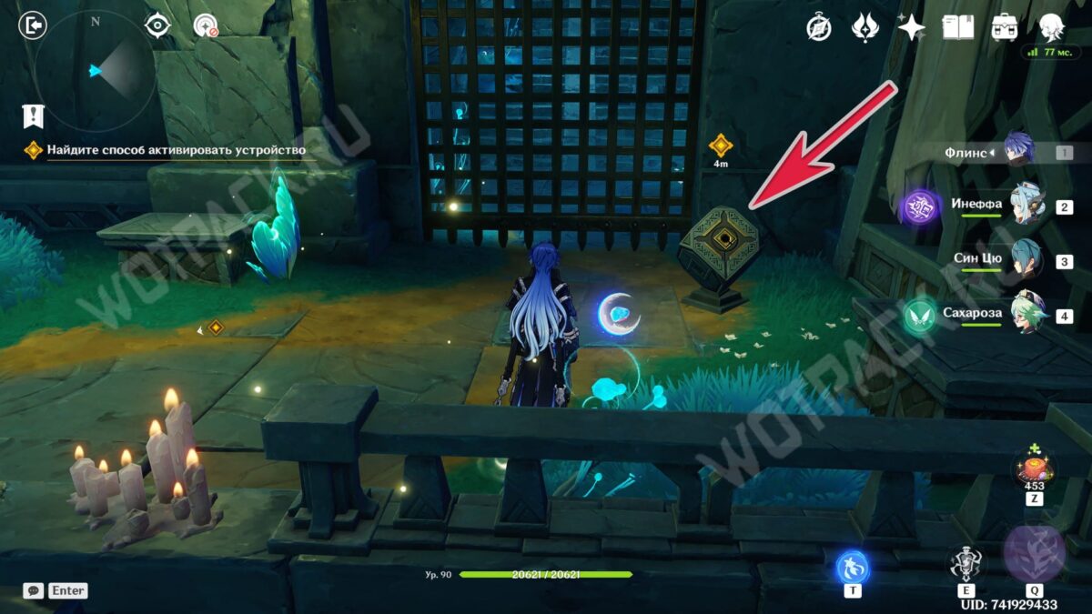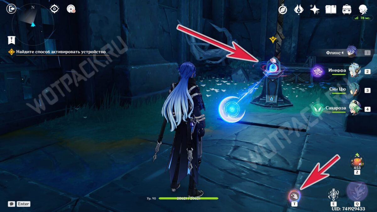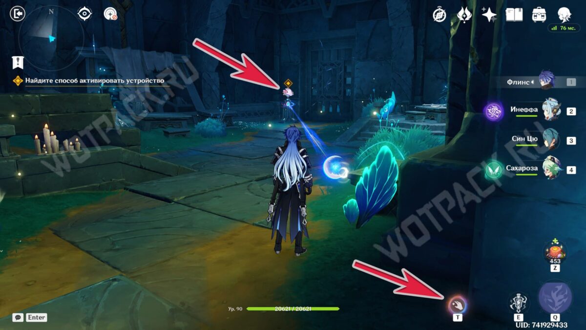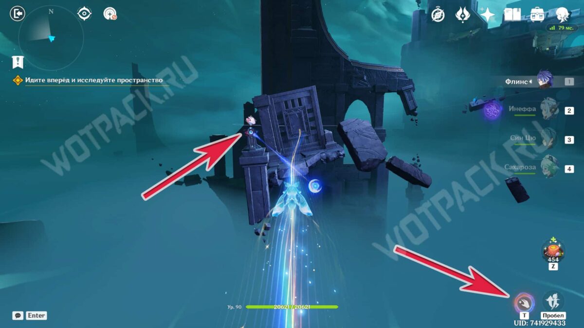 Повернитесь спиной к барельефам и вытяните ядро из подставки у лестницы. Двигаясь рядом с растениями, дающими энергию куувяки, дойдите до дальней колонны справа.