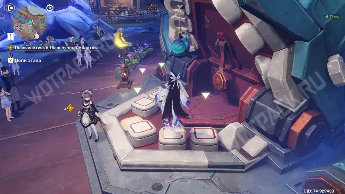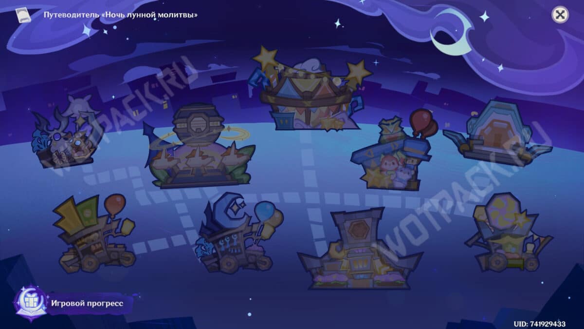 Для удобства перемещения между ними при нажатии на цель задания будет открываться путеводитель «Ночь лунной молитвы», схематически указывающий возможные стоянки. Прохождение всех путевых точек откроет доступ к дополнительным наградам в виде: