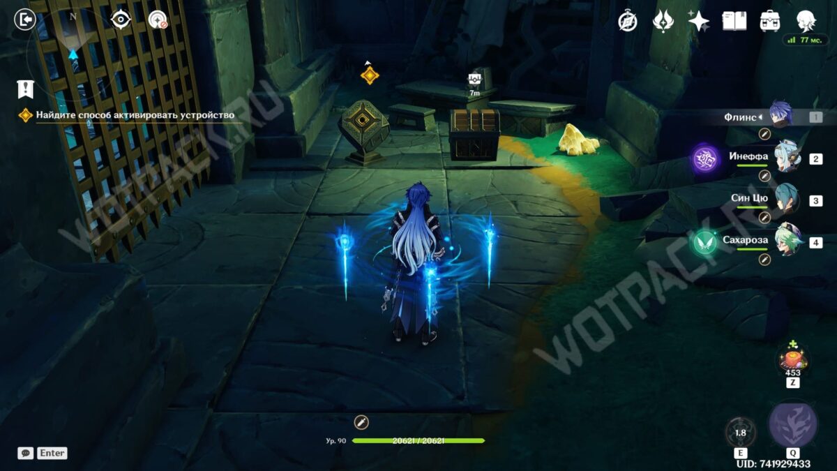 Заберите награды из появившегося богатого сундука и нажмите на кнопку, чтобы открыть решетку слева. Войдите внутрь небольшой комнаты и вытащите ядро из устройства.