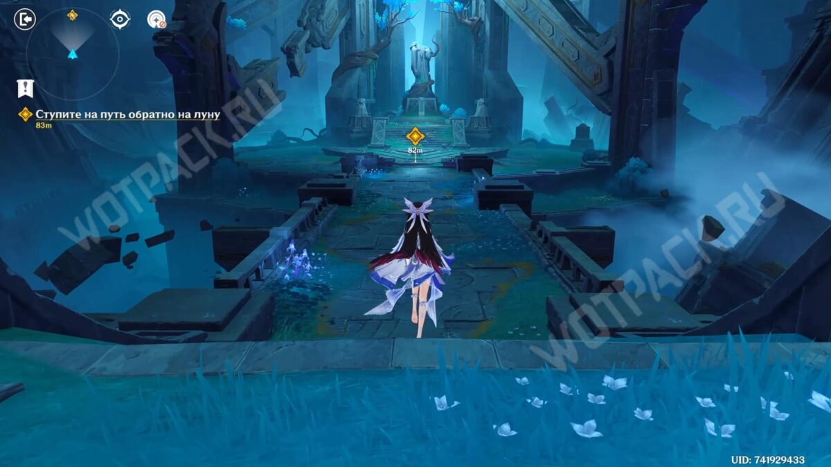 Пройдите вперед и вновь встаньте на лунный путь. В этот раз на пути вновь будут попадаться преграды в виде запертых врат. Разрушайте их, забирая питающие их шары из активаторов рядом.