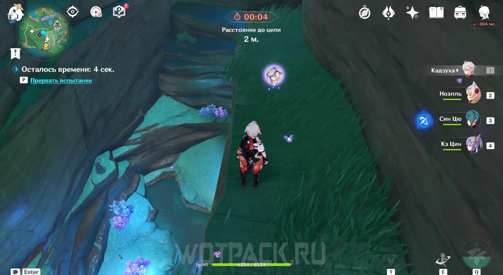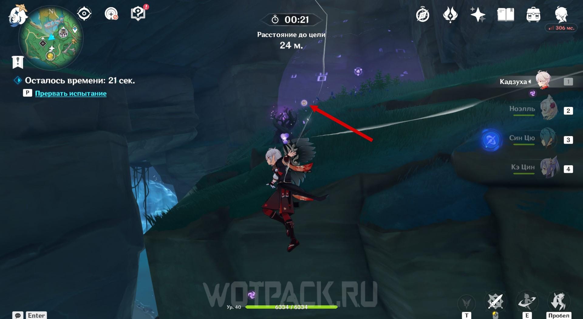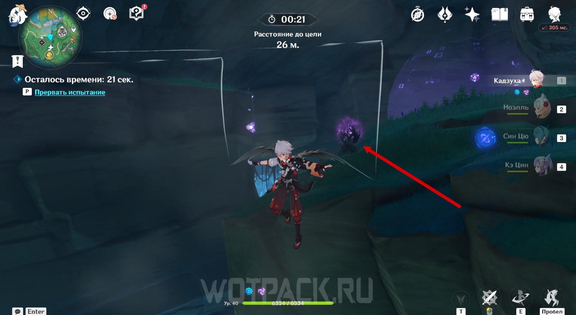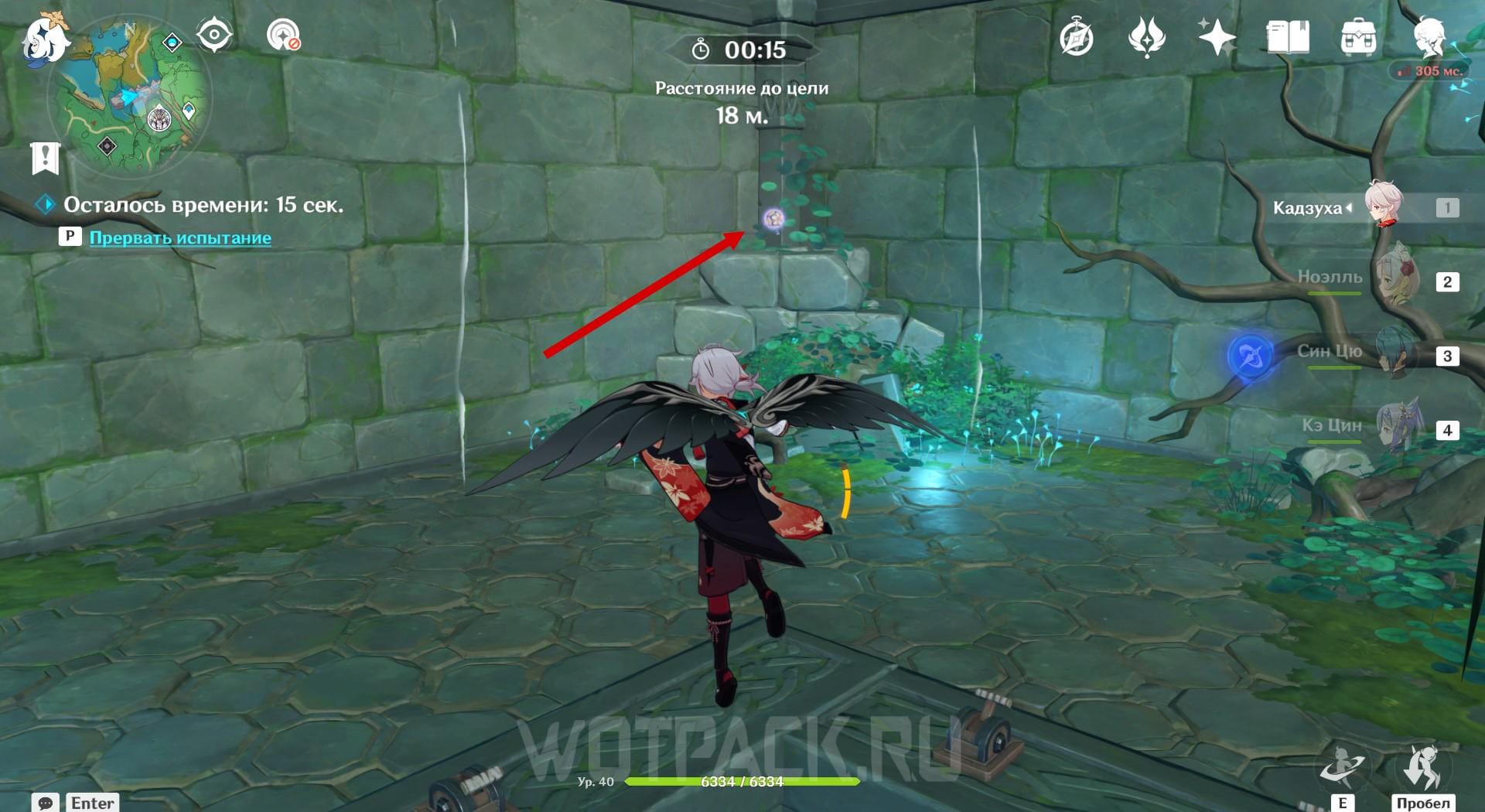 Сложность последнего испытания заключается в том, что за отведенные 30 секунд добраться до нужного места достаточно проблематично. Поэтому постарайтесь взять в отряд персонажей, чьи способности помогут забираться на высокие точки. Например, хорошо подойдут Кадзуха, Венти, Странник, Чжун Ли, аль-Хайтам, Кэ Цин.