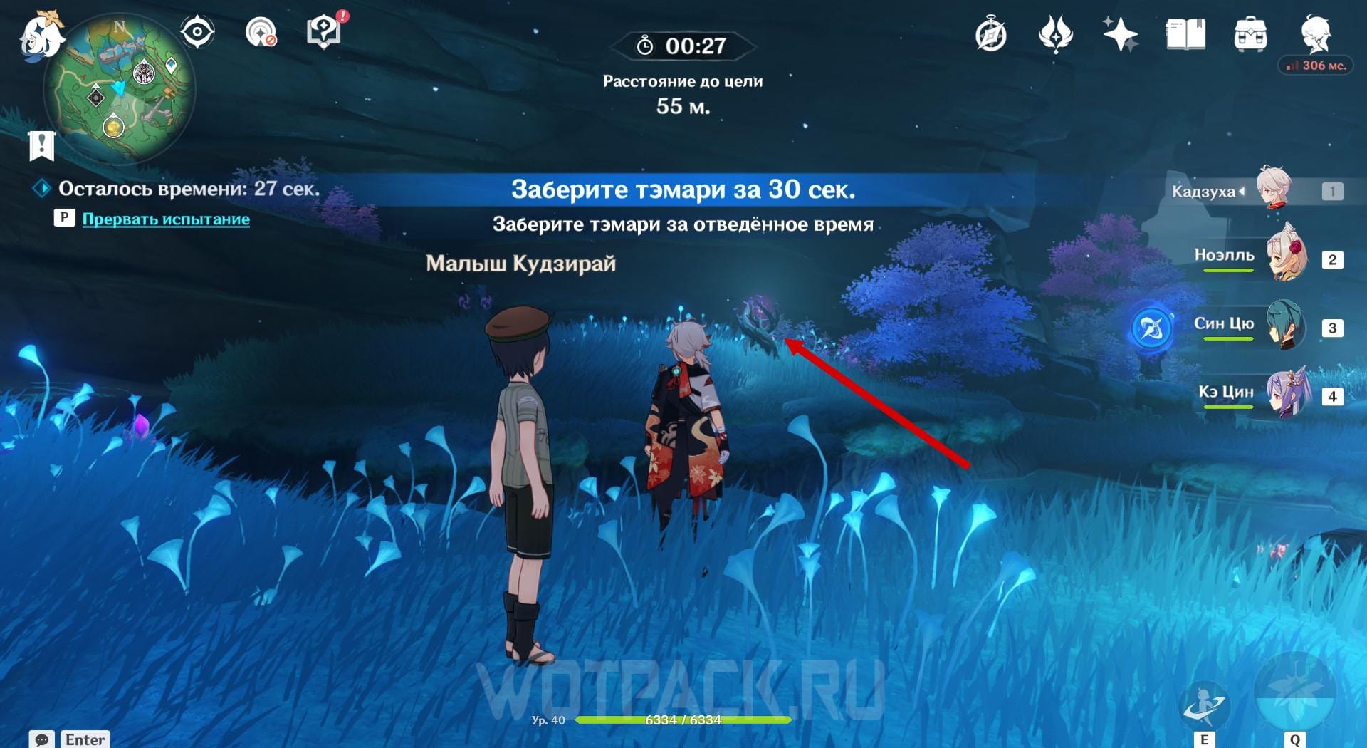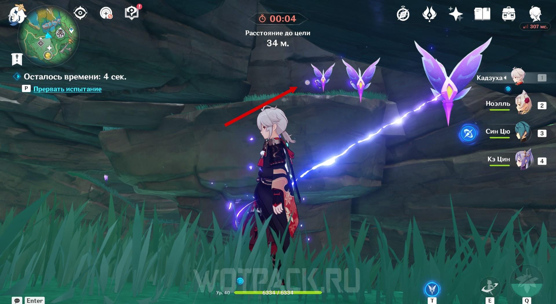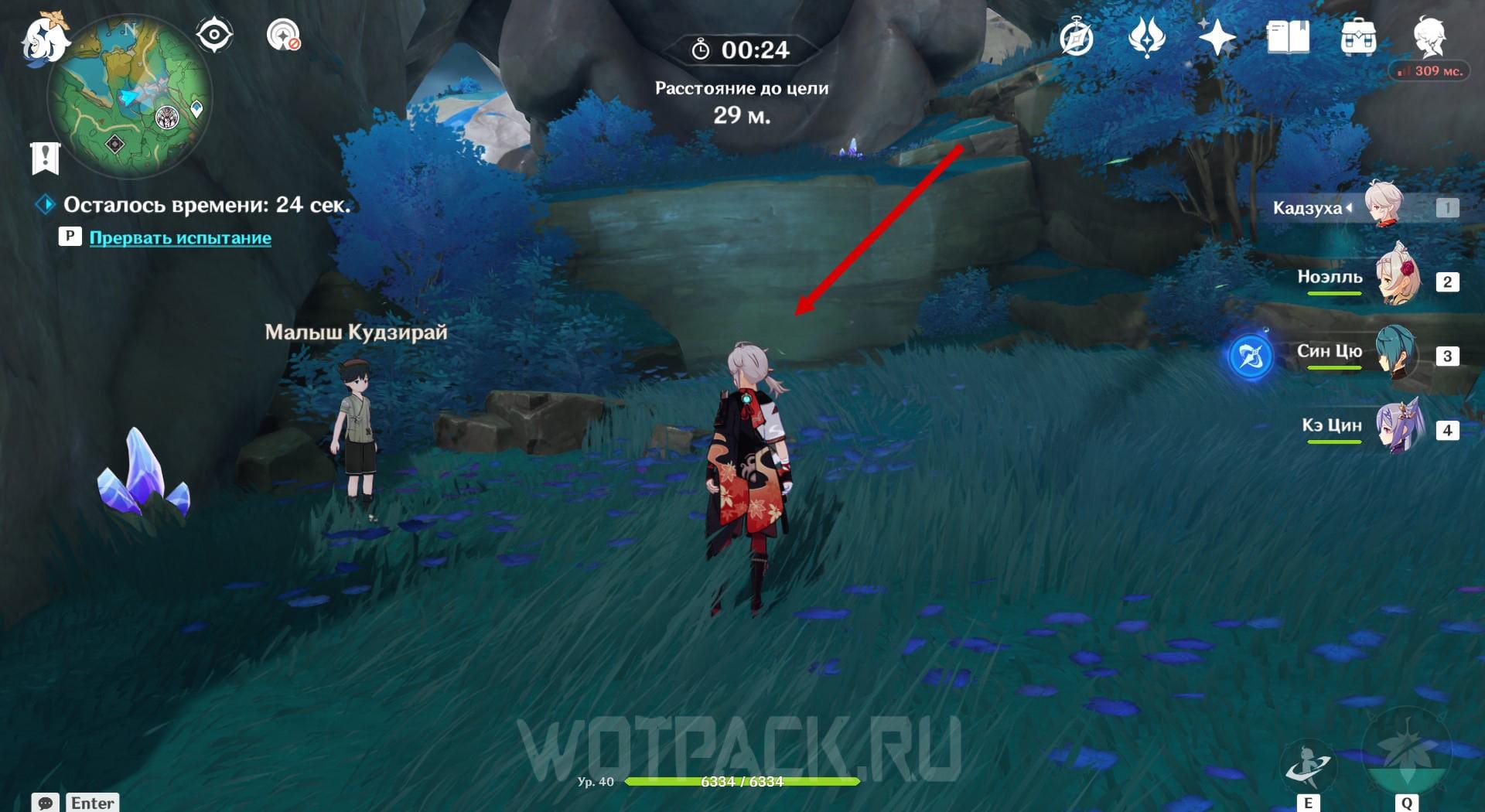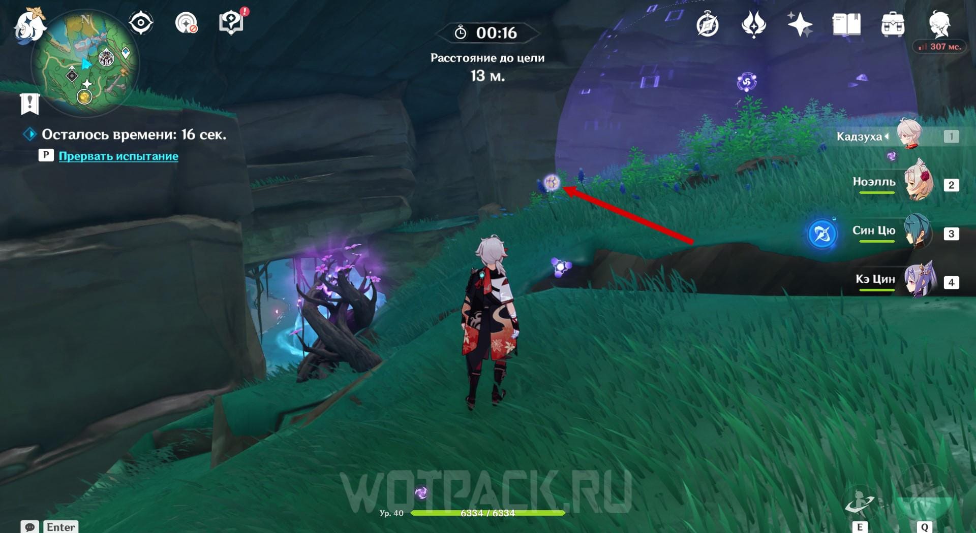 Сложность последнего испытания заключается в том, что за отведенные 30 секунд добраться до нужного места достаточно проблематично. Поэтому постарайтесь взять в отряд персонажей, чьи способности помогут забираться на высокие точки. Например, хорошо подойдут Кадзуха, Венти, Странник, Чжун Ли, аль-Хайтам, Кэ Цин.