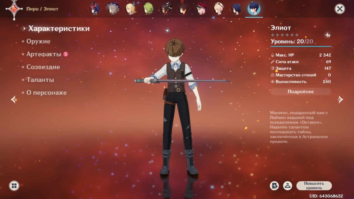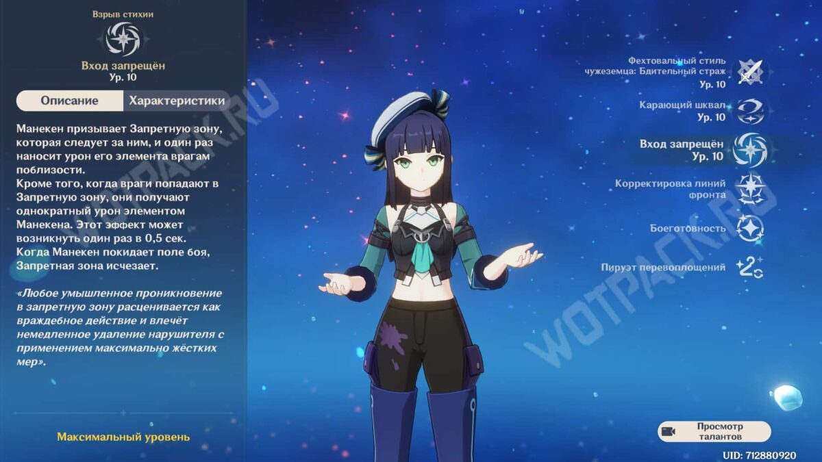 Распределение ресурсов в навыки Манекена в Геншин Импакт не требуется, поскольку они равномерно развиваются одновременно с повышением уровня героя. Отдать ему корону нельзя.