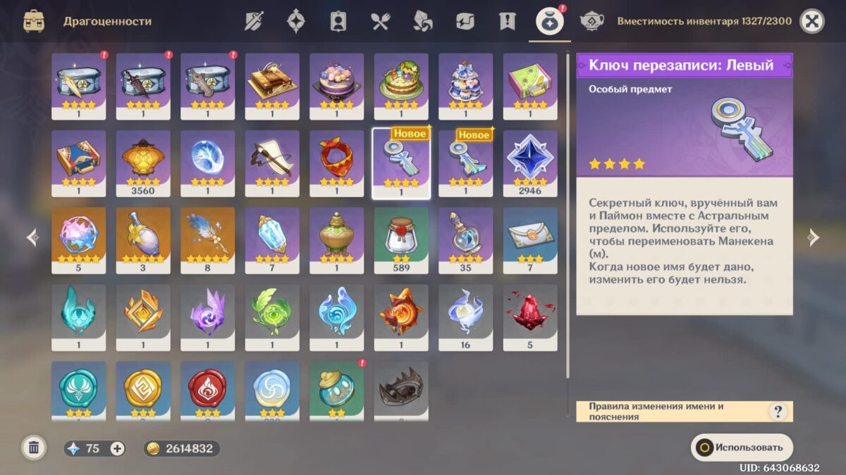 После попадания в Астральный предел в инвентарь добавят два ключа перезаписи (левый и правый), с помощью которых появится возможность один раз поменять имя мужской и женской версии Манекена: