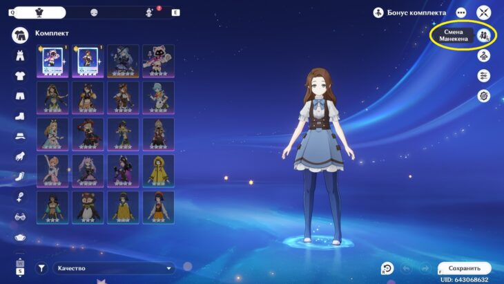 - Кликните на верхнюю кнопку «Смены Манекена» с силуэтами близнецов.