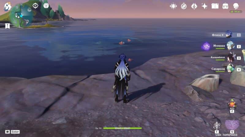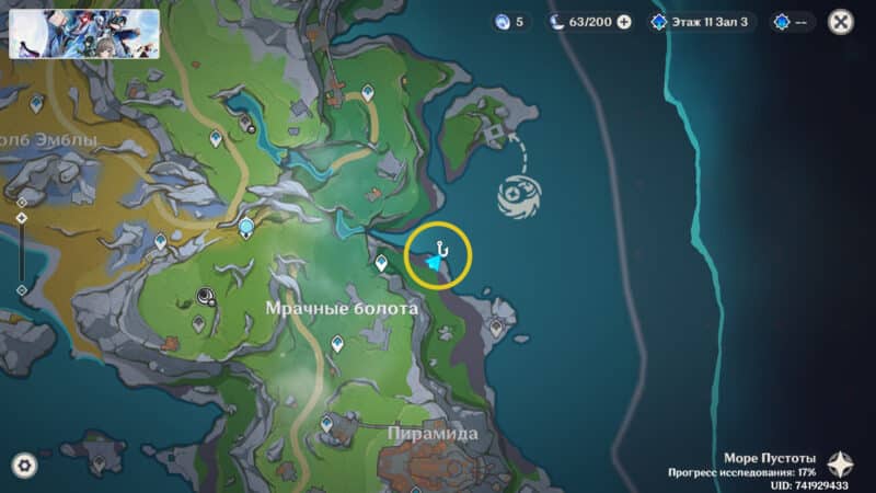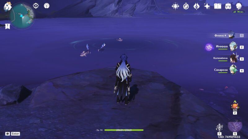 Рыболовная зона в центре залива, чуть дальше от берега. Для открытия этой точки необходимо пройти задание мира Добыча Миража. После завершения квеста ловля будет доступна.