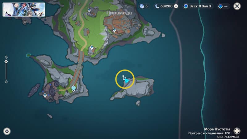 Рыболовное место располагается чуть дальше от порта. Переместитесь к точке телепортации и двигайтесь по песчаной косе, пока не обнаружите характерное для активности свечение.