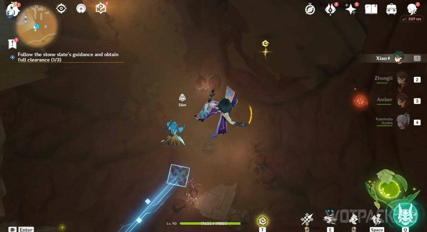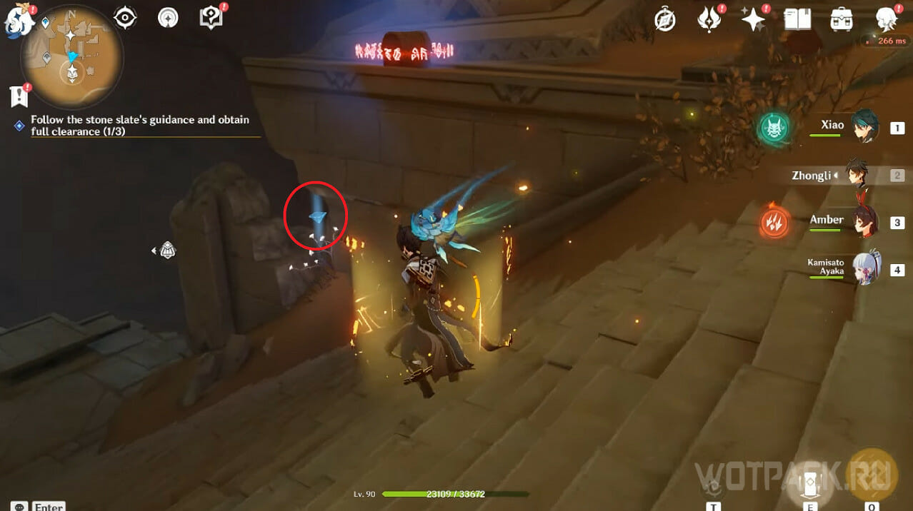 Поднимитесь наверх по обрыву и воспользуйтесь четырехлистными символами, чтобы забраться еще выше. По итогу окажетесь на каменной лестнице, ведущей к мосту.