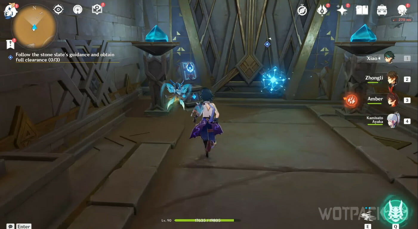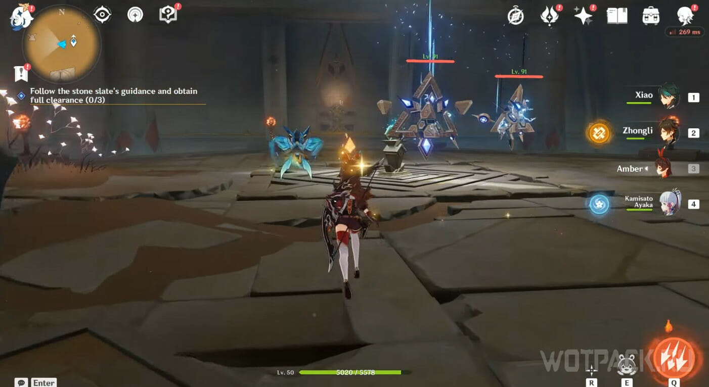 Когда активируете все факела, барьер с подсвечника спадет, а рядом появятся мобы Первозданные конструкции. Одолейте врагов: после этого возьмите появившуюся Первозданную искру и ведите ее по коридорам к главному залу.