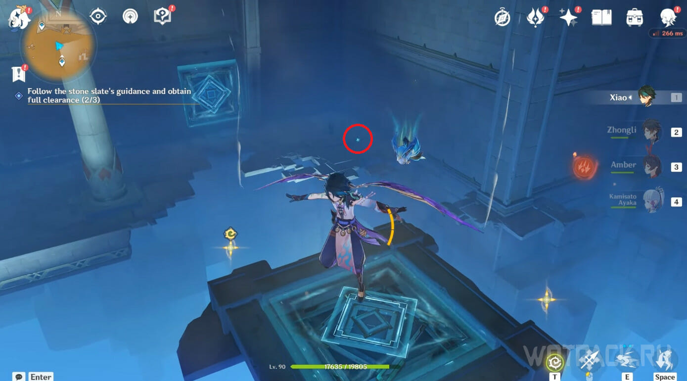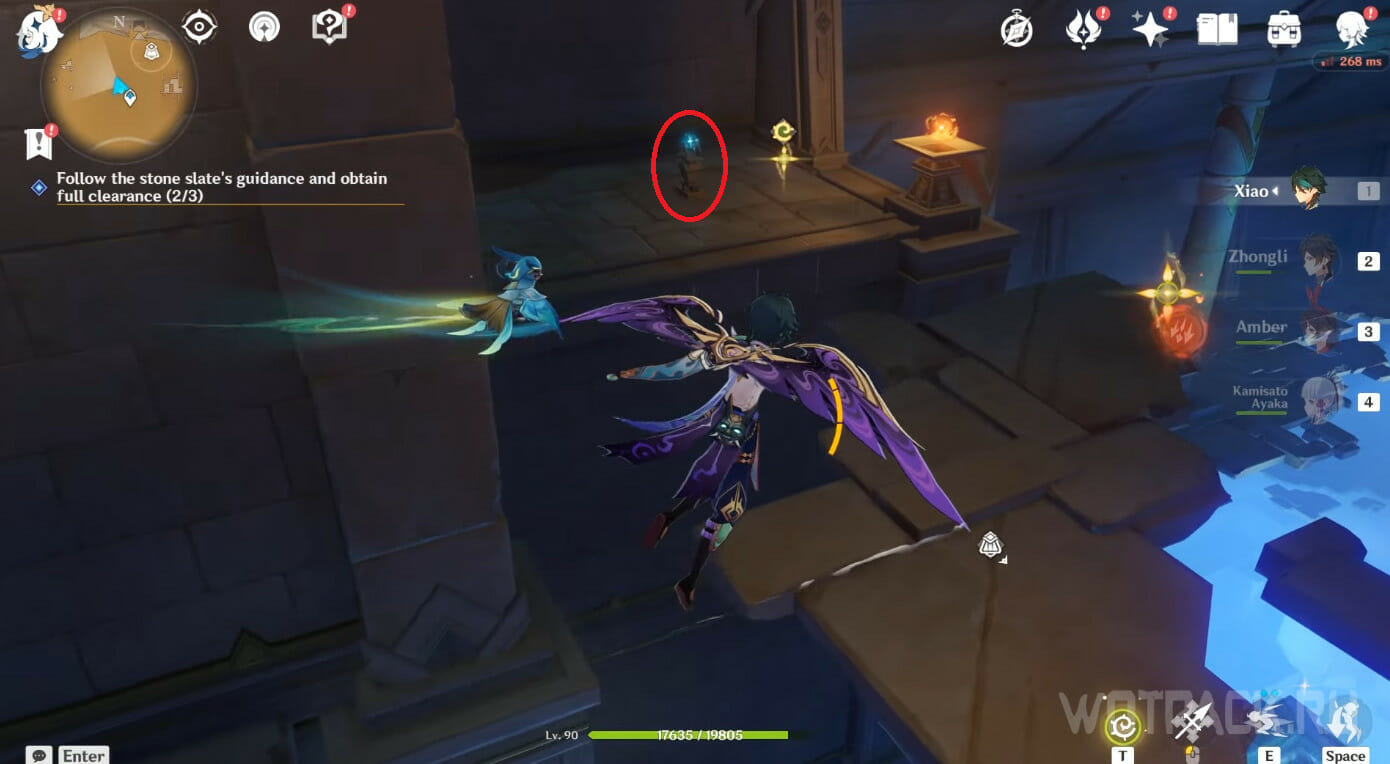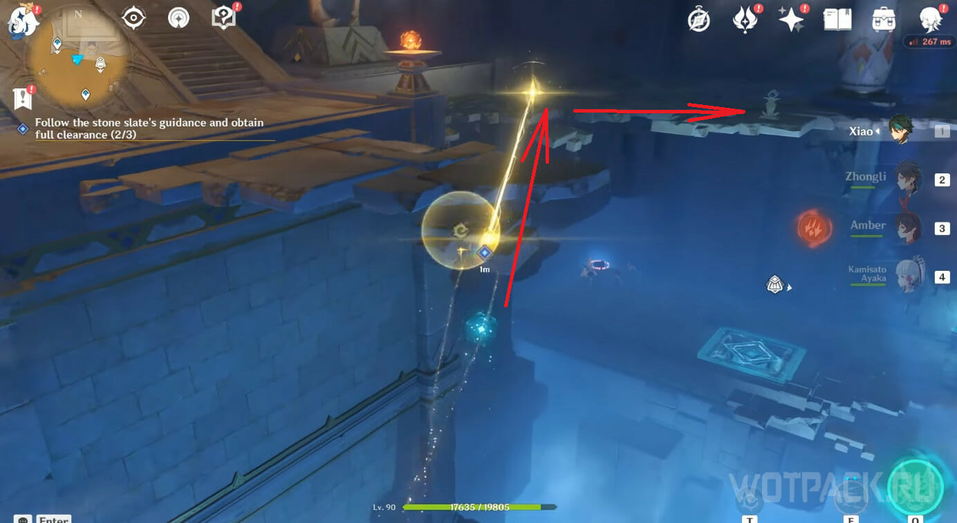 Как и в предыдущих случаях, от телепорта идите прямо, но на этот раз сверните направо. На небольшом выступе парит третья Первозданная искра, которую нужно «активировать» и провести чуть дальше. Она сразу же встанет на подсвечник.