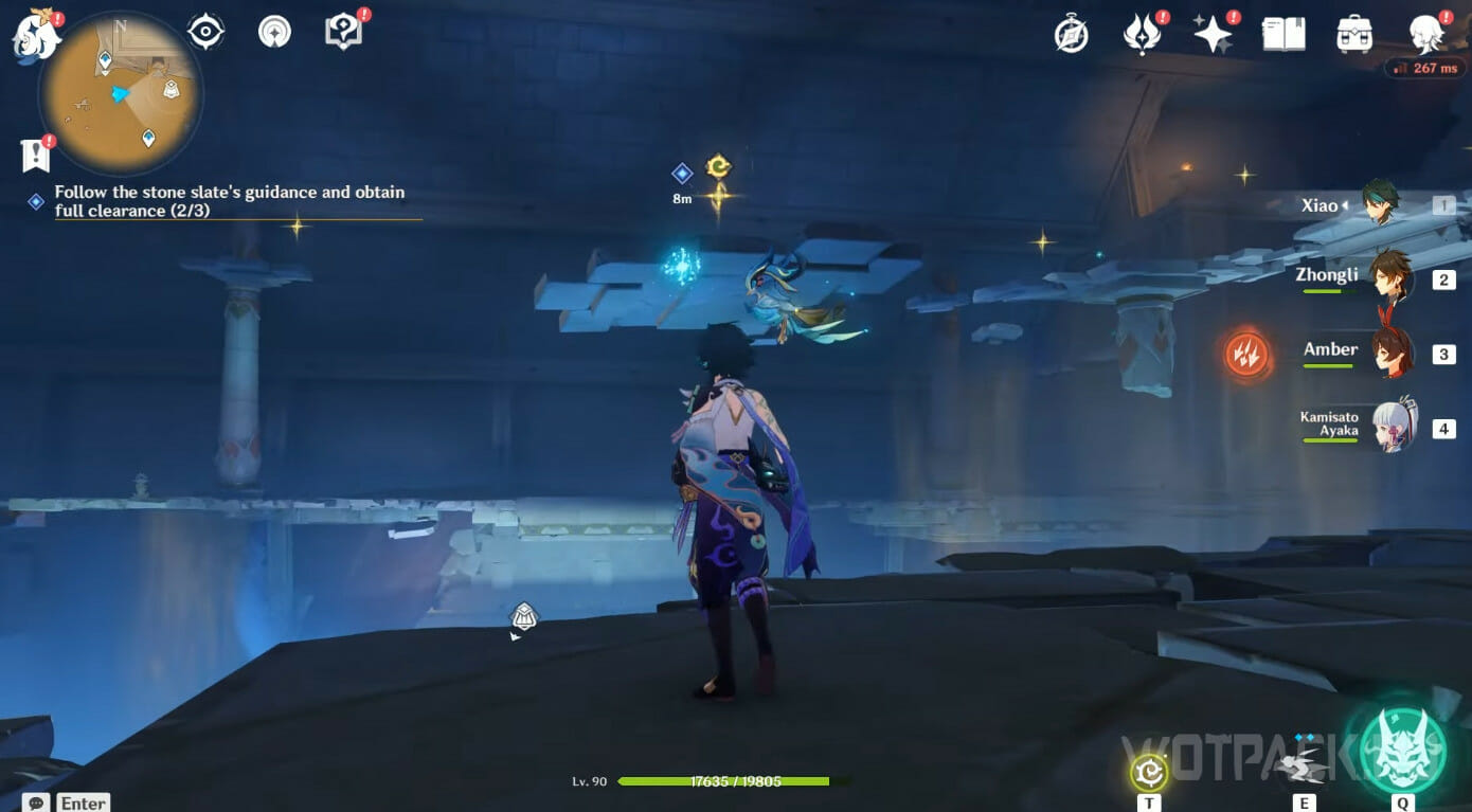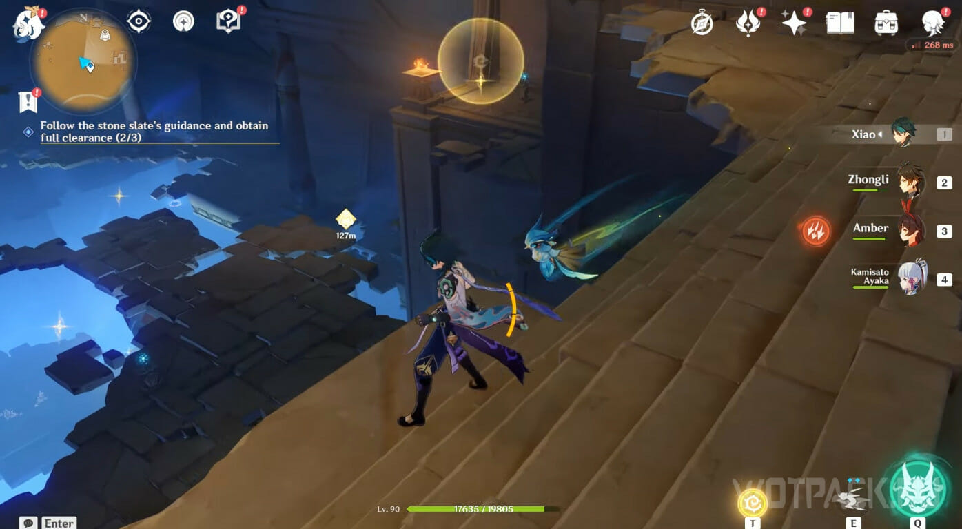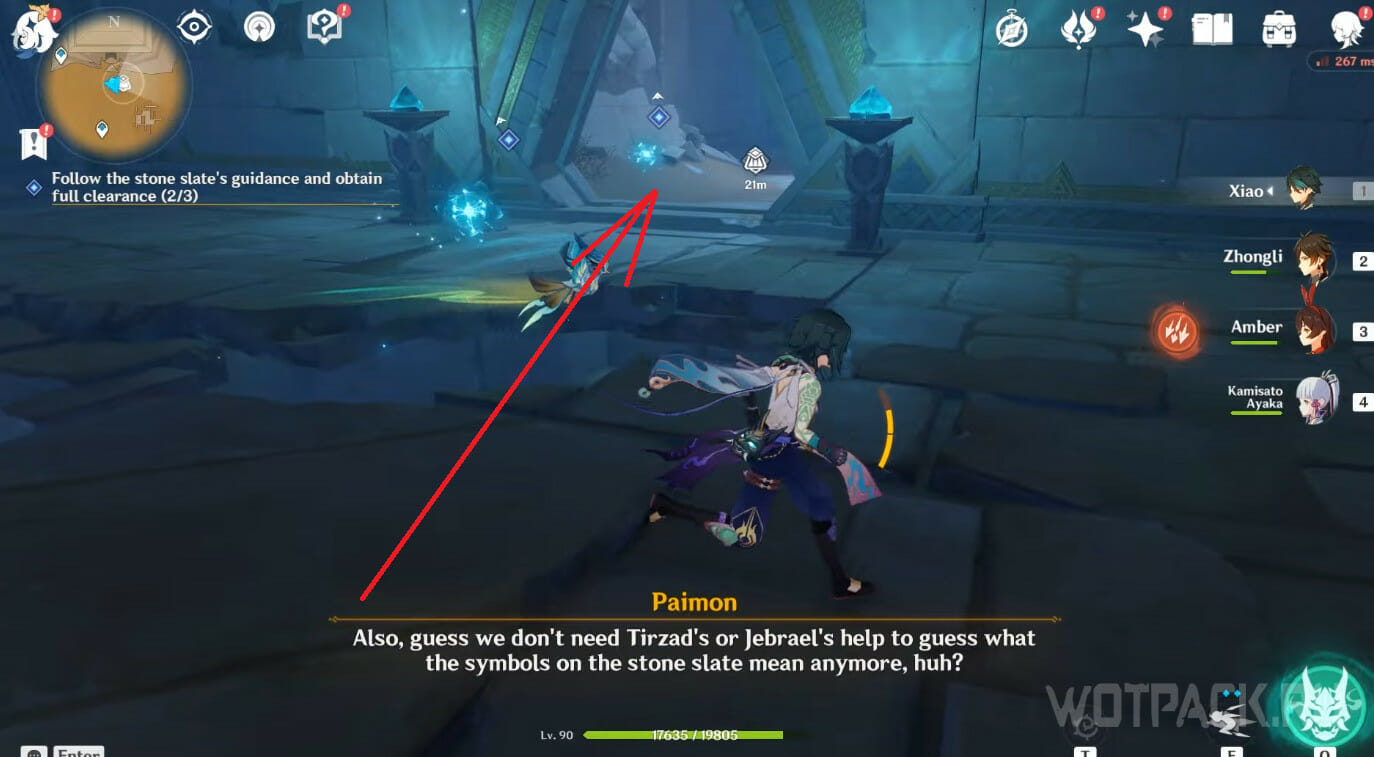 Как и в предыдущих случаях, от телепорта идите прямо, но на этот раз сверните направо. На небольшом выступе парит третья Первозданная искра, которую нужно «активировать» и провести чуть дальше. Она сразу же встанет на подсвечник.