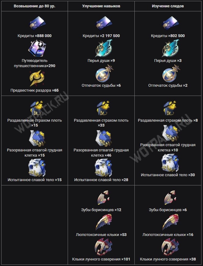 Скорость | Базовое значение или 134 ед. | «Медленная» сборка предполагает, что скорость остается на базовом значении (95 + 5 от «следов»). В таком случае выбранная Гармония, способная продвигать действие союзника, должна иметь скорость 160 ед. и выше, чтобы предлагать стабильные ходы. |