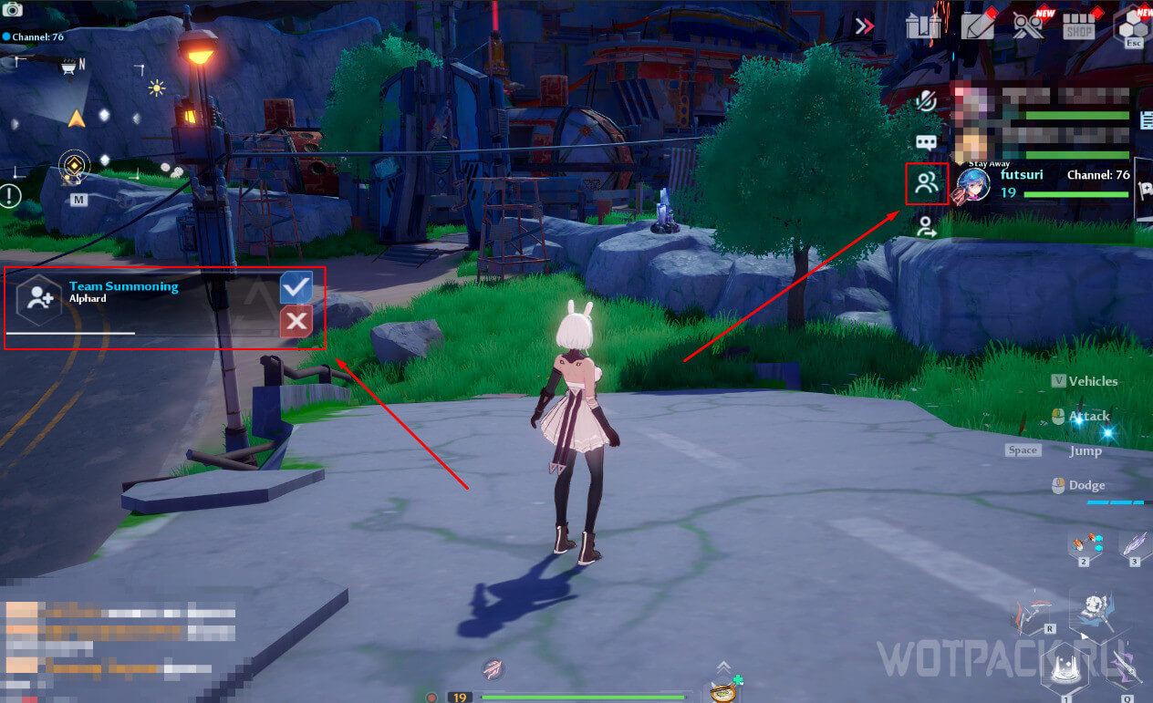 - В качестве обычного участника или нажмите на иконку с двумя фигурами, чтобы переместиться, или дождитесь приглашения от лидера: оно появится слева.