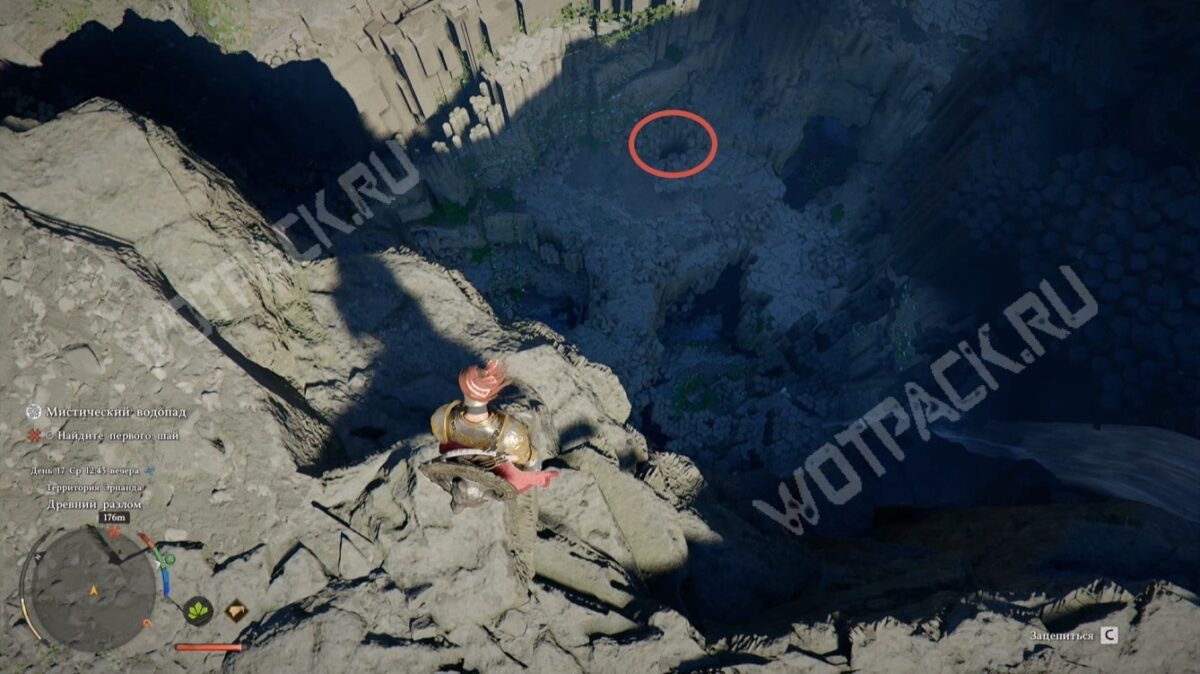Чтобы отыскать шай, двигайтесь в сторону Пайлуна и исследуйте северную часть Эрнанда. Здесь находится Древний разлом — глубокий скалистый участок с выемками, ведущими в холодные и тёмные пещеры. Используйте «Полёт», чтобы безопасно спуститься по самому узкому из проходов.