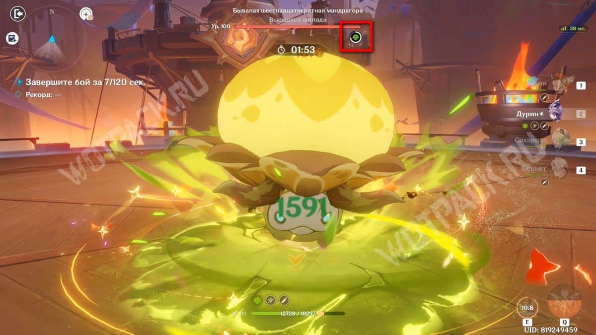- Старайтесь как можно быстрее снять шкалу, используя Пиро или Электро удары. Не сливайте способности героев, наносящие больше всего урона, до снижения резистов.