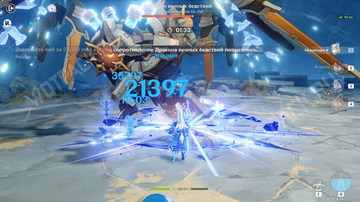 |  |  |  |  | Группа через атаки в падении от Варесы под баффом Сянь Юнь. Фурина дает достаточно статуса и усиливает отряд. Инеффа закрывает Варесу щитом и превращает Заряжен в ЛЗ. |
