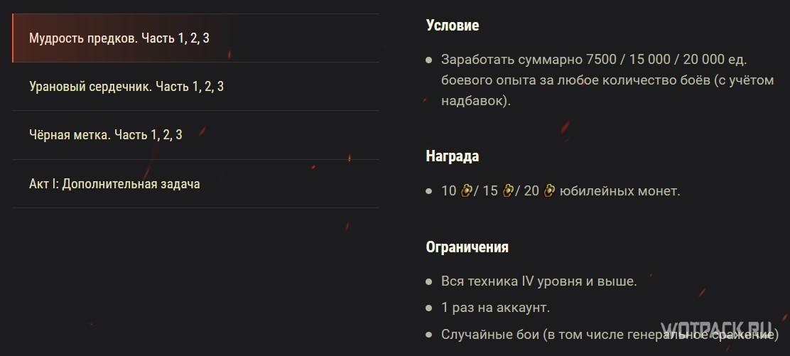 В каждом акте будут задачи активной фазы и затишья, на время которых в игре будут появляться специальные боевые задачи. Выполнять их можно на технике начиная с 4 уровня и зарабатывать новую валюту «Десятилетия».
