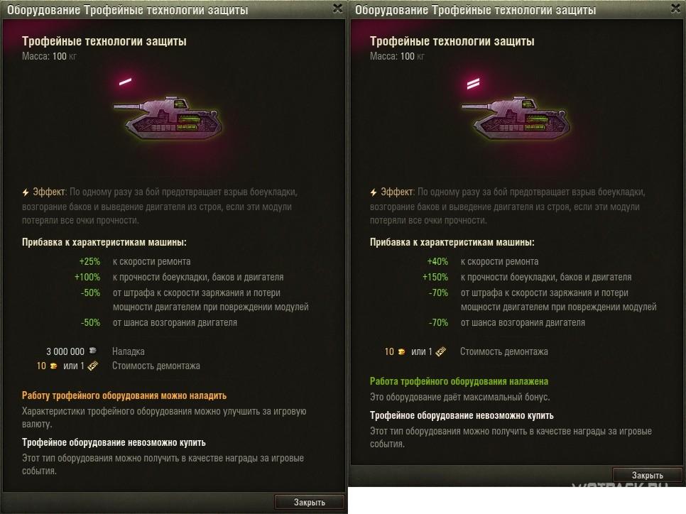 - трофейные технологии защиты (приравниваются к боновой усовершенствованной компоновке);