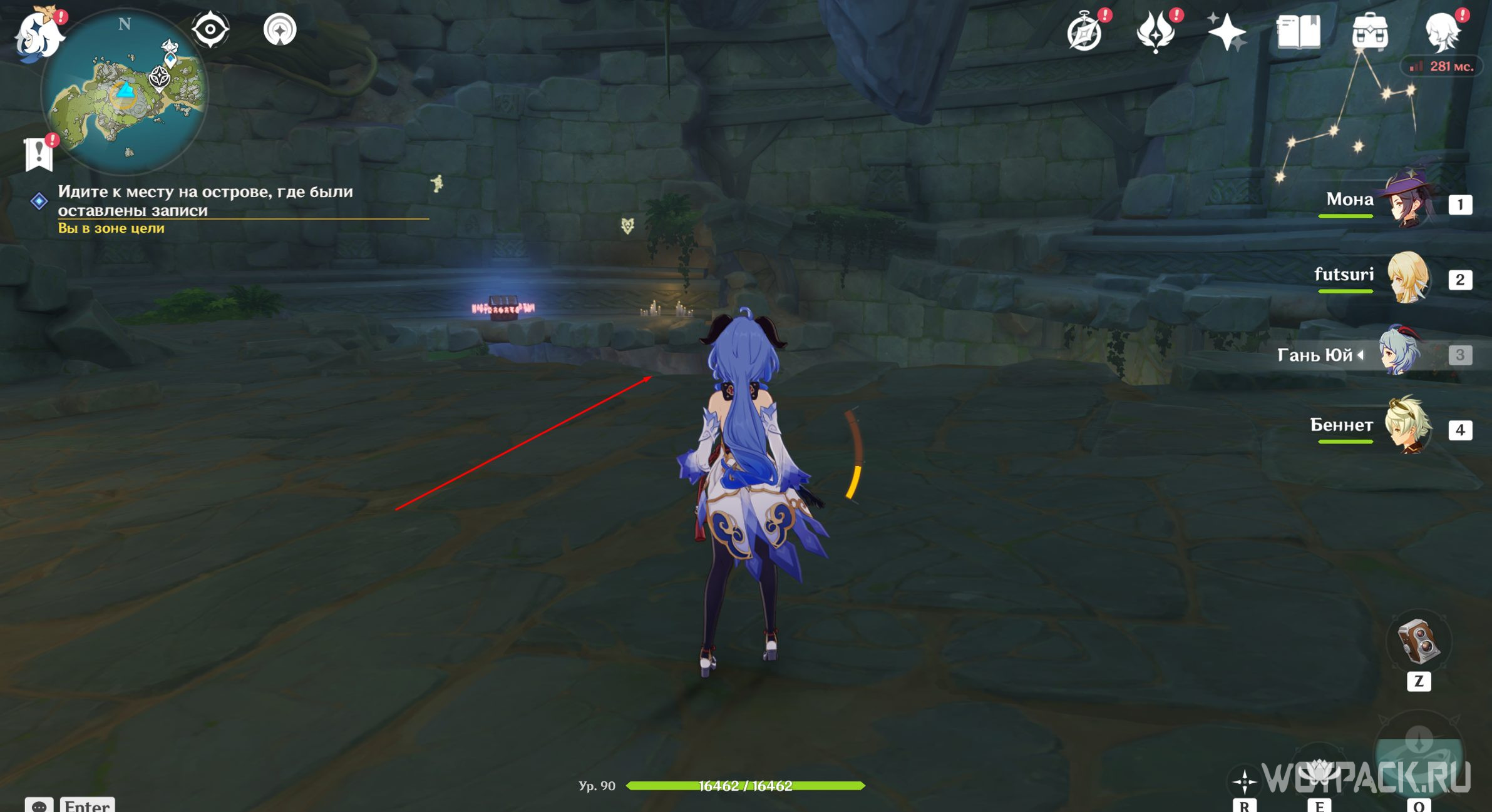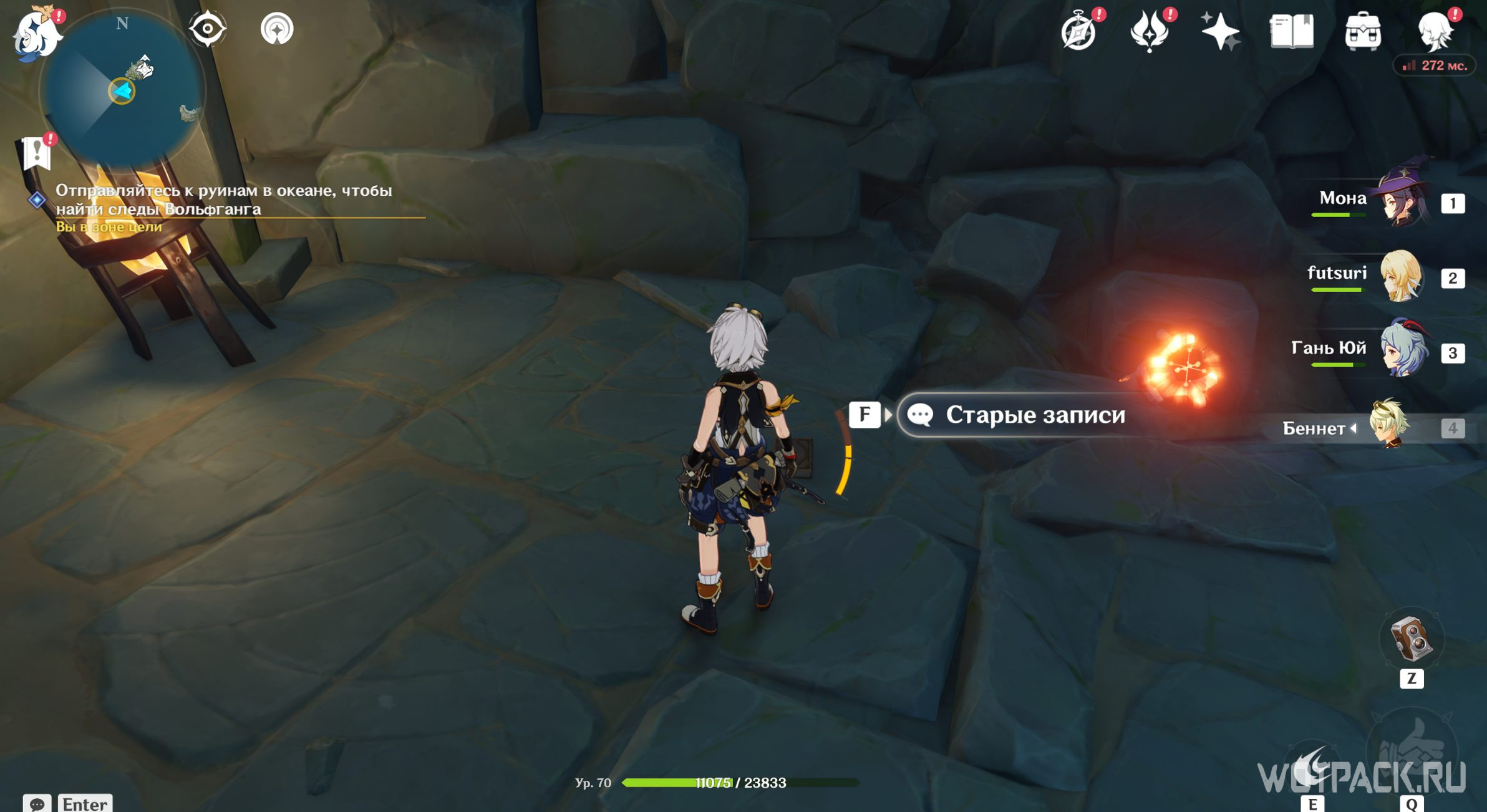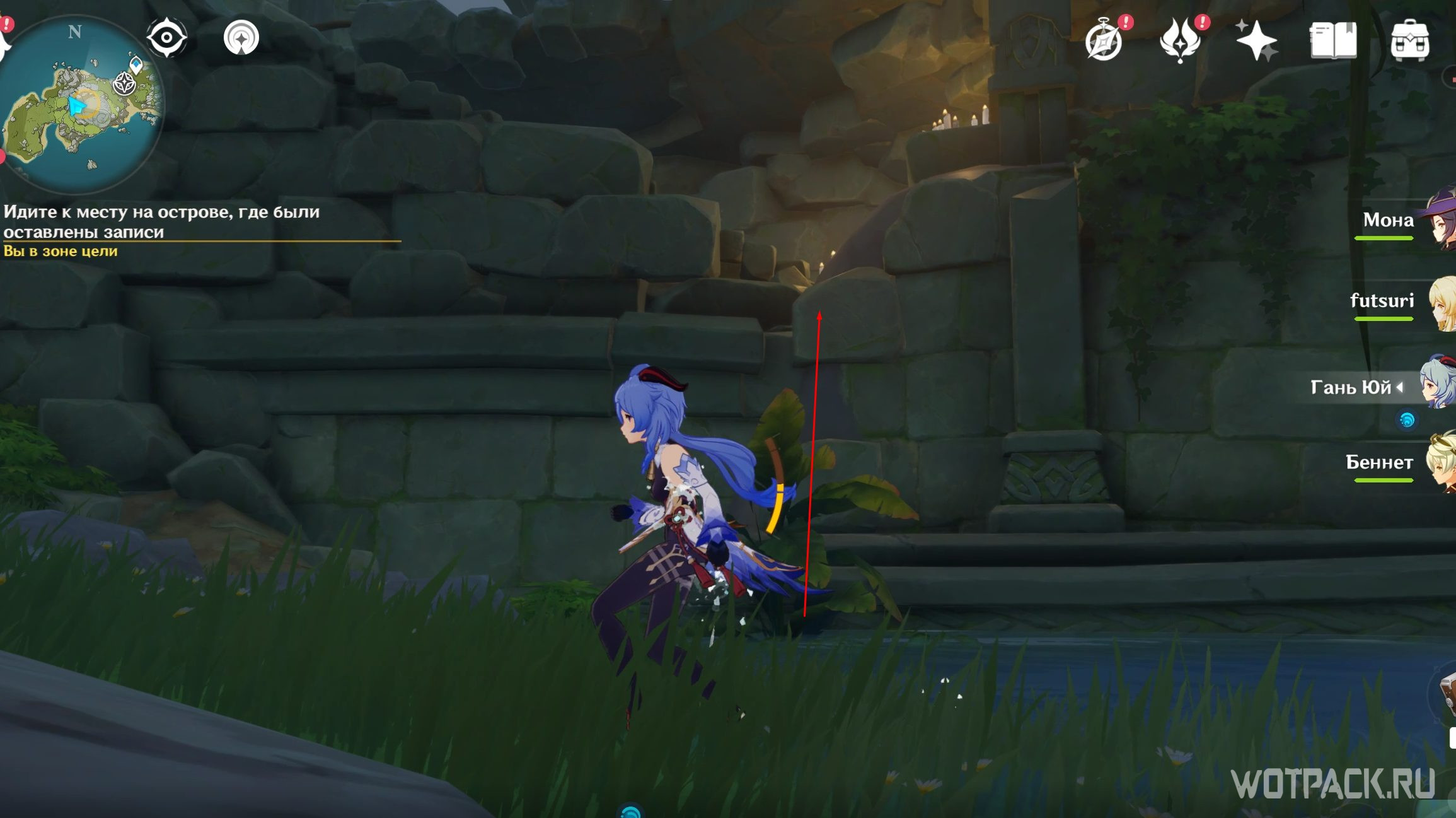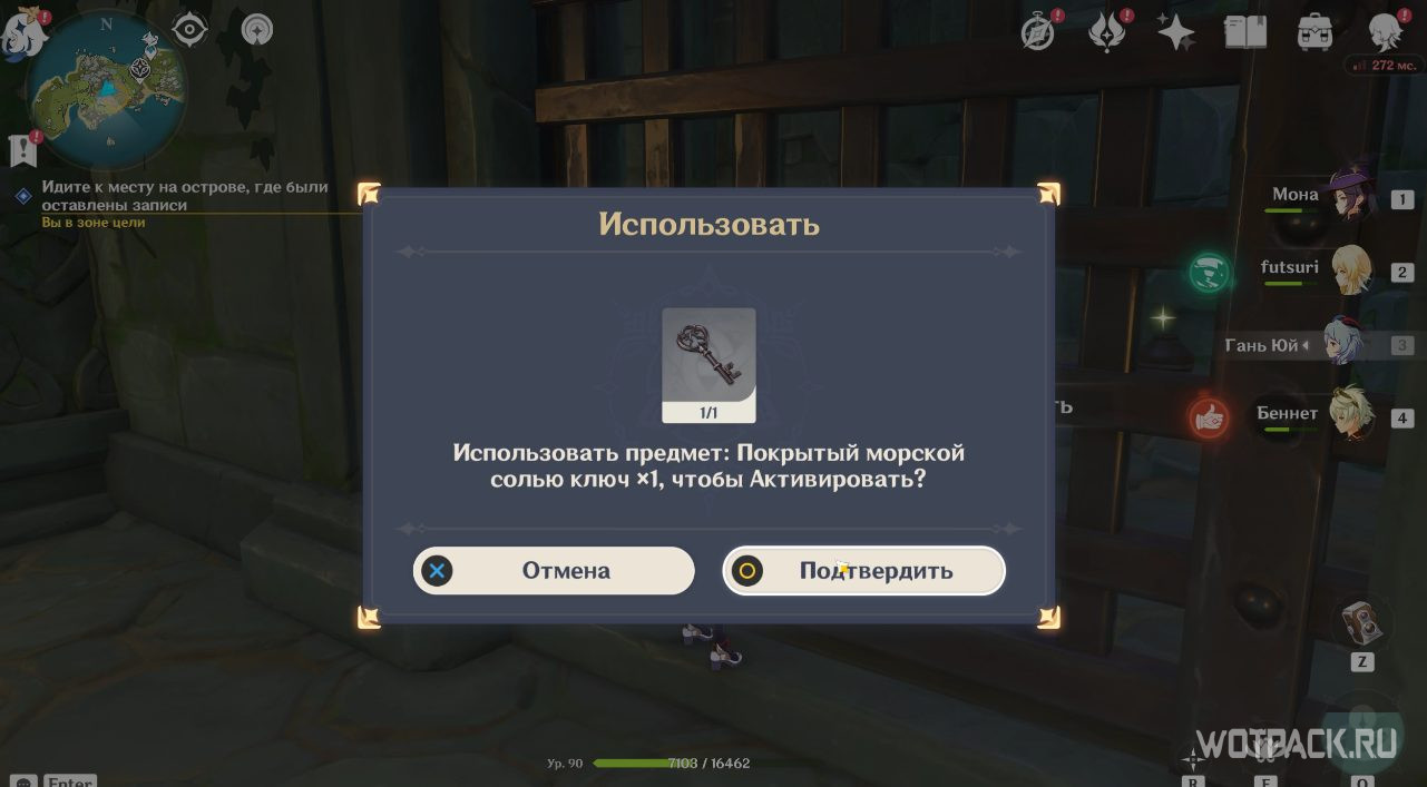 Вернитесь на вершину Опасного острова и посмотрите записи Вольфганга снова. Похоже, он все-таки выбрался из тайной комнаты. Паймон стало интересно, что стало с исследователем, поэтому отправляйтесь дальше.