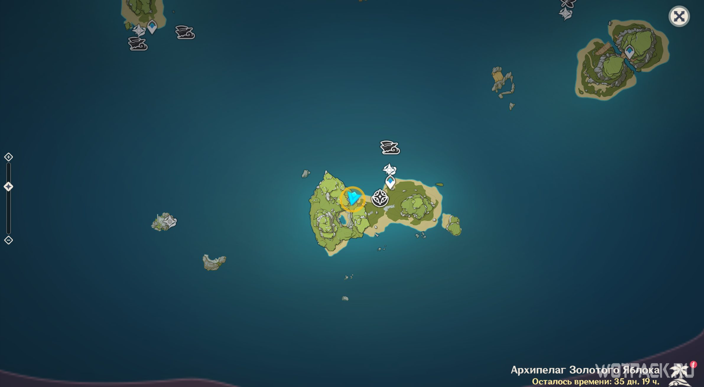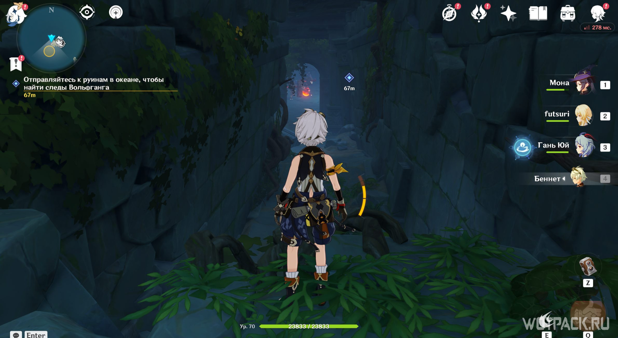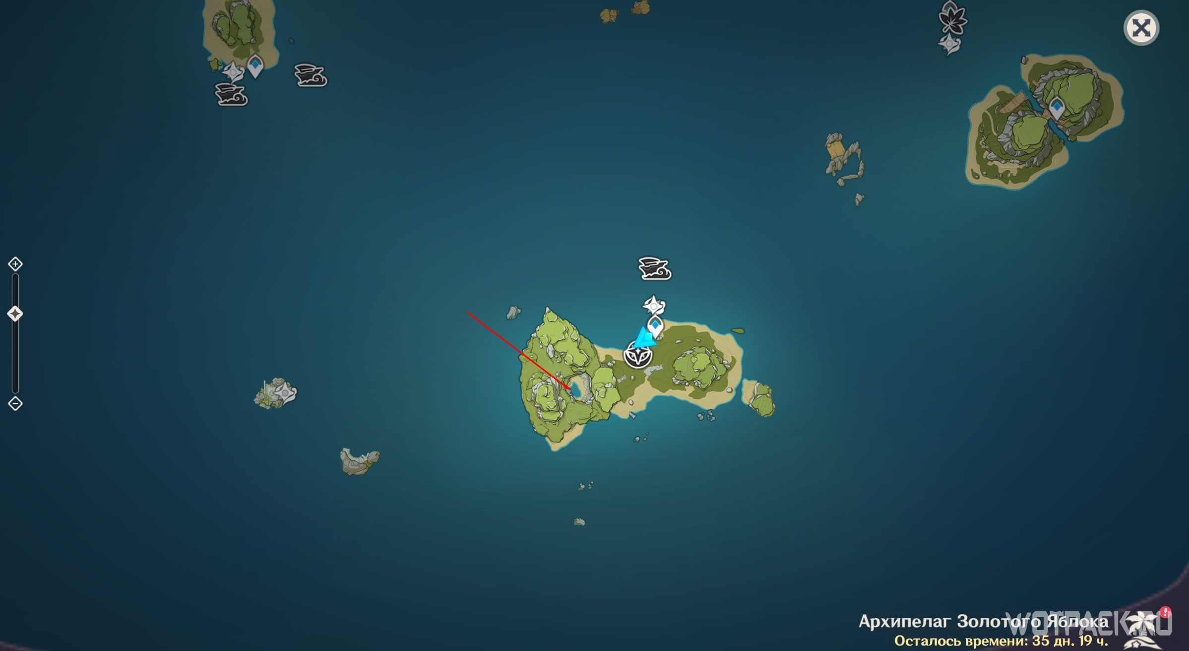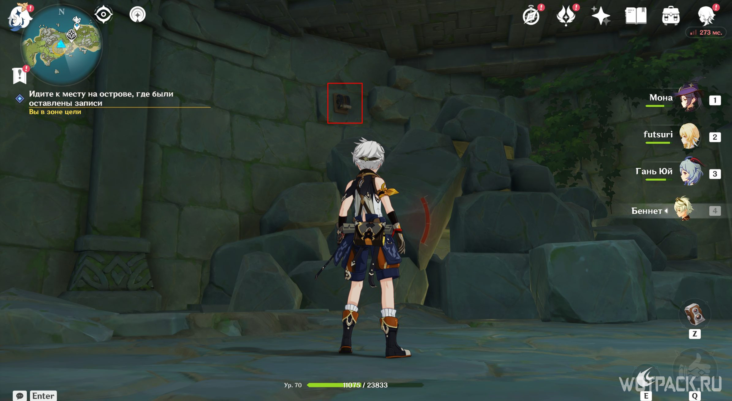Вернитесь на вершину Опасного острова и посмотрите записи Вольфганга снова. Похоже, он все-таки выбрался из тайной комнаты. Паймон стало интересно, что стало с исследователем, поэтому отправляйтесь дальше.