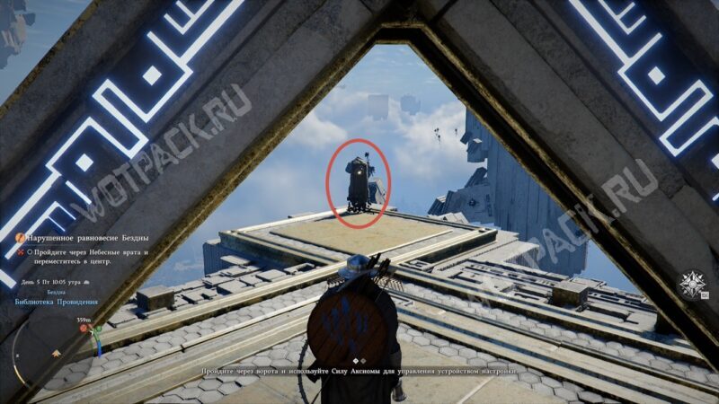 Активируйте Врата Небесного пути и подойдите к устройству регулировки. Используйте «Силу Аксиомы» (по умолчанию «Tab»), прокрутите панель против или по часовой стрелке и завершите настройку.