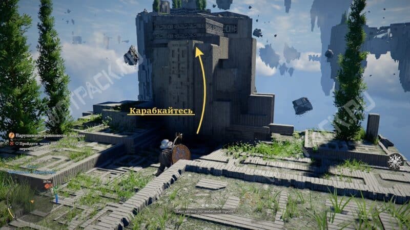 Двигайтесь по тропе, преодолевая препятствия карабканьем и прыжками. Так доберитесь до второго телепорта для быстрого перемещения.