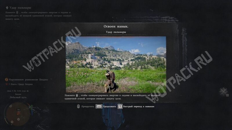 Здесь перейдите в режим наблюдения (по умолчанию «Ctrl»). Спустя несколько секунд автоматически изучите новую способность «Удар пальмары».