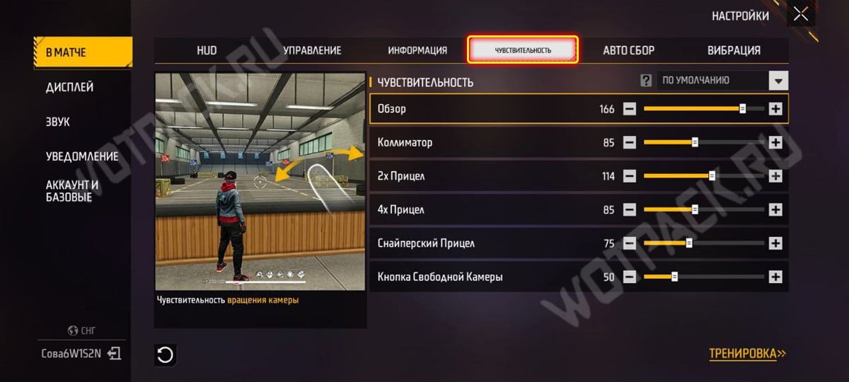 Настройки для оттяжки и хедшотов в Фри Фаер