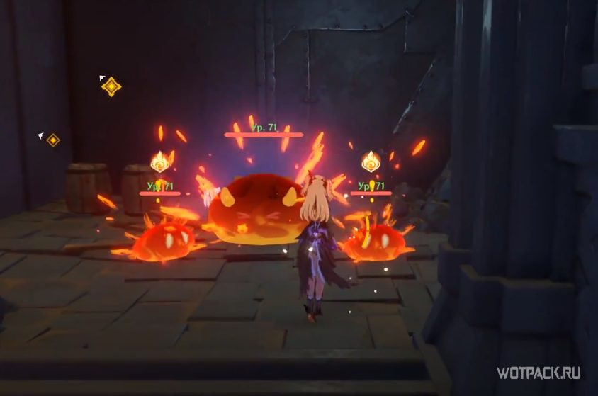 В новом помещении обитают Электро и Пиро слаймы. Справиться с ними несложно, главное не забывать восстанавливать здоровье хилером или едой.