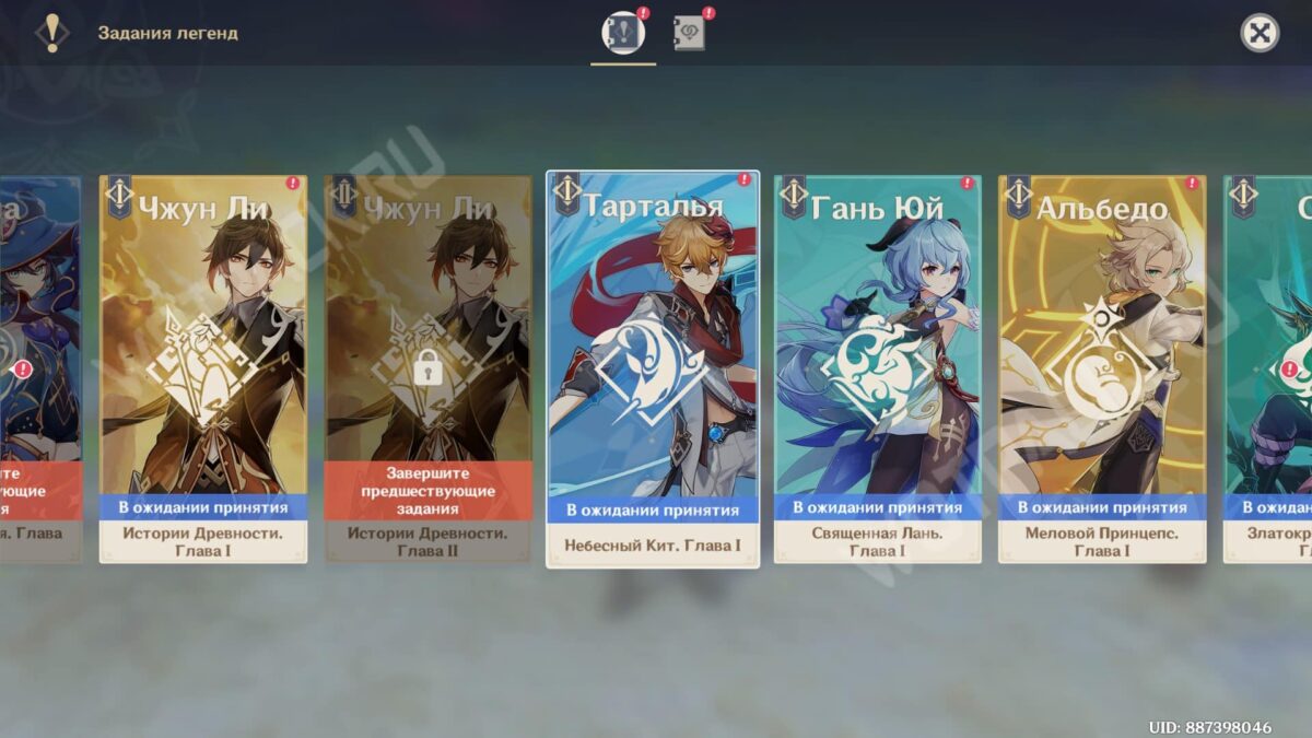 Задание легенд Тартальи является одним из первых в игре. Для открытия необходимо: