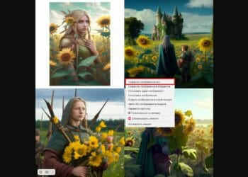 Основной язык для запросов — английский. Другие также допустимы, однако велика вероятность, что итоговый вариант будет далек от вписанного запроса. Для примера ввели фразу «Эльф собирает подсолнухи на лугу» на русском и французском языках: