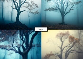 Как можно заметить, вторая работа имеет больше деталей, связанных с основным запросом пользователя. Каждый арт из четырех представленных имеет свою структуру, подачу и стиль. Результат разнообразен, и в то же время имеет общую идею, а все благодаря подробно прописанному промту.