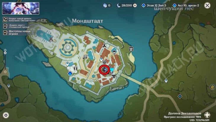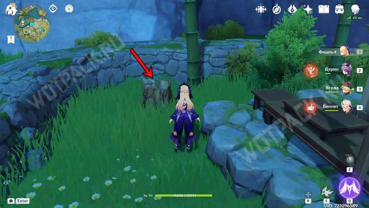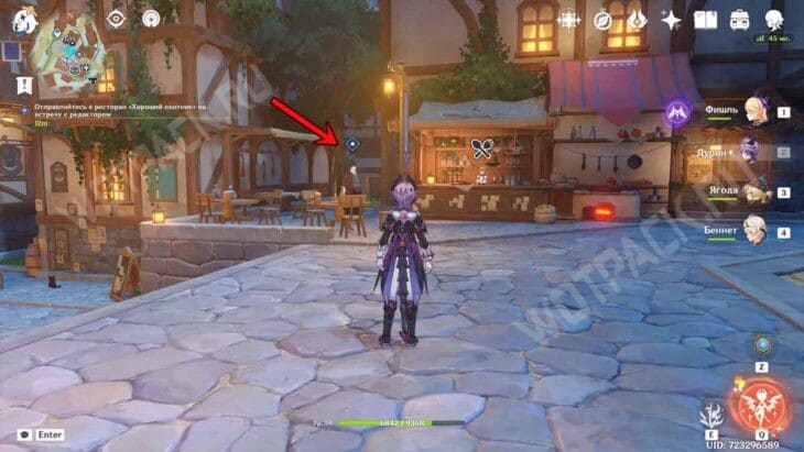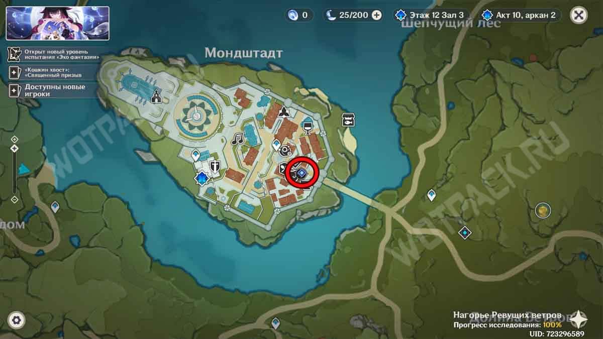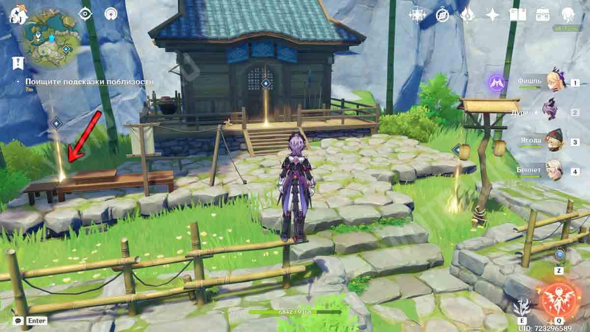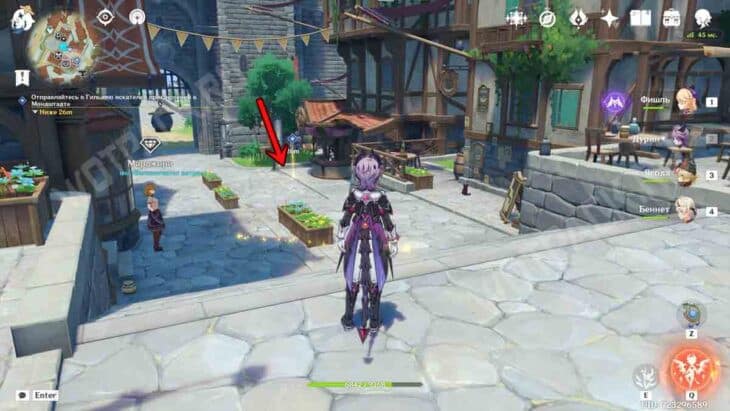 Быстрее всего до точки можно добраться от телепорта, расположенного над значком алхимического верстака. Рядом со стойкой Путешественник столкнется с Фишль и Озом, которые заинтересуются поручением и напросятся сопроводить героев.