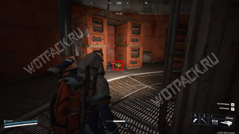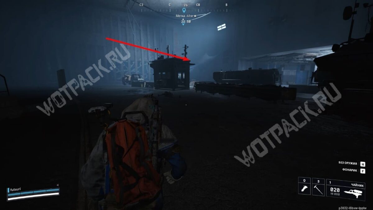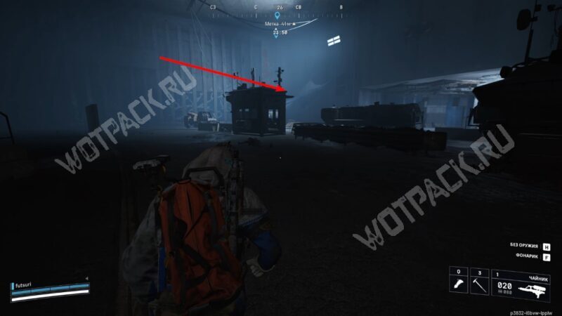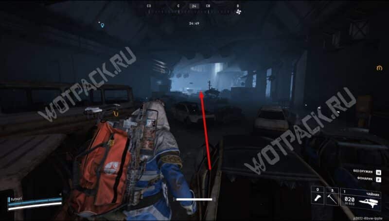 Продолжайте путь по Транспортному тоннелю до конца, держась левой стороны главной трассы. Вскоре доберётесь до другого выхода из подземного комплекса — там осмотрите правую часть локации, где расположена палатка и небольшой лагерь.
