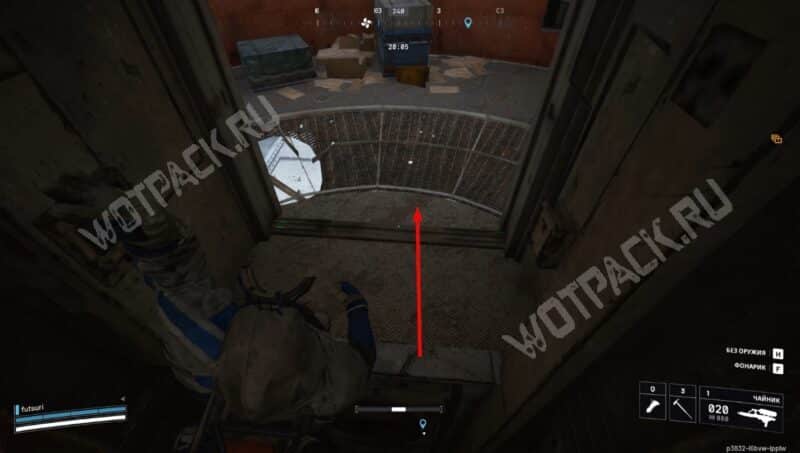 Следующий пункт назначения — антенна Вершины странника. Направляйтесь к высокой башне, обойдите её с севера и воспользуйтесь зиплайном, чтобы подняться. Спрыгните на предпоследнем этаже — это позволит оказаться в рабочих помещениях.