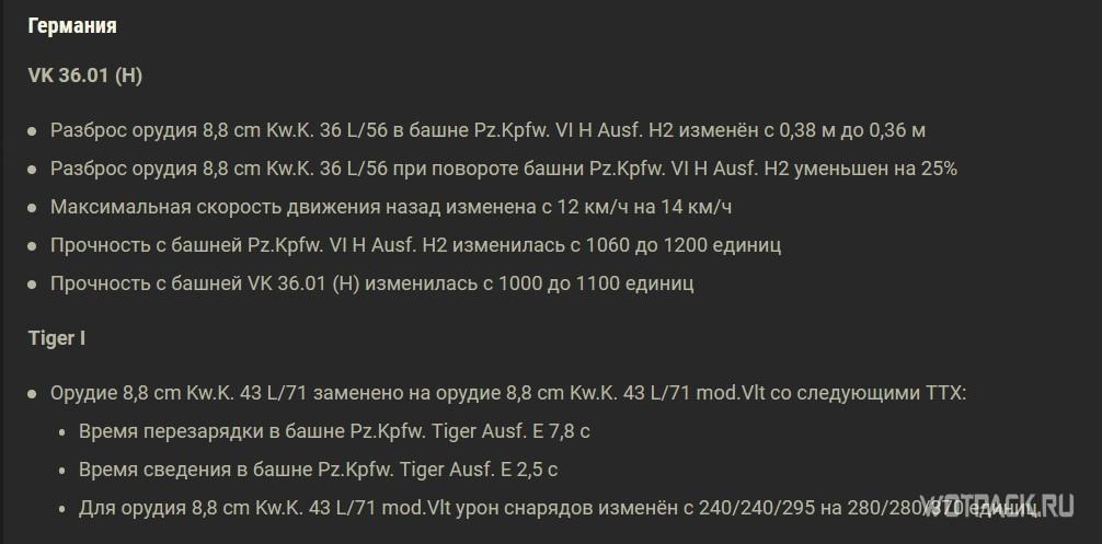 Все танки ветки получают повышение разового урона начиная с 7 уровня. В зависимости от их недостатков, им выборочно улучшили точность, время сведения, бронирование. Е 75 и VK 36.01 (H) повысили запас прочности.