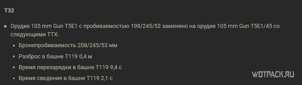 T32 теперь не будет настолько унылым, некоторые игроки считают его чуть ли не худшим танком 8 уровня. Ему заменили орудие на новое с лучшим пробитием, точностью, временем сведения и перезарядкой. M103 улучшили стабилизацию и время сведения орудия, а еще повысили бронирование корпуса и башни.