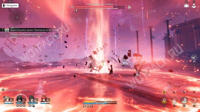 | Заряженный удар: вокруг босса появляется красный круг, сигнализирующий о мощной атаке. | Используйте атакующий навык любого героя, чтобы прервать и заполнить ошеломление. |